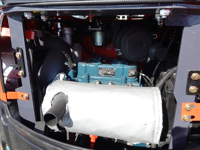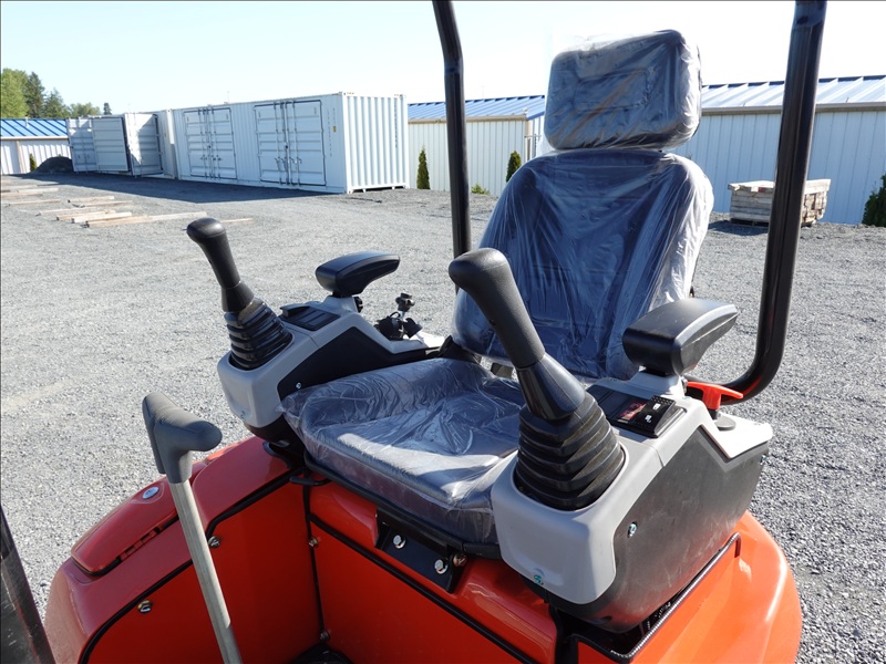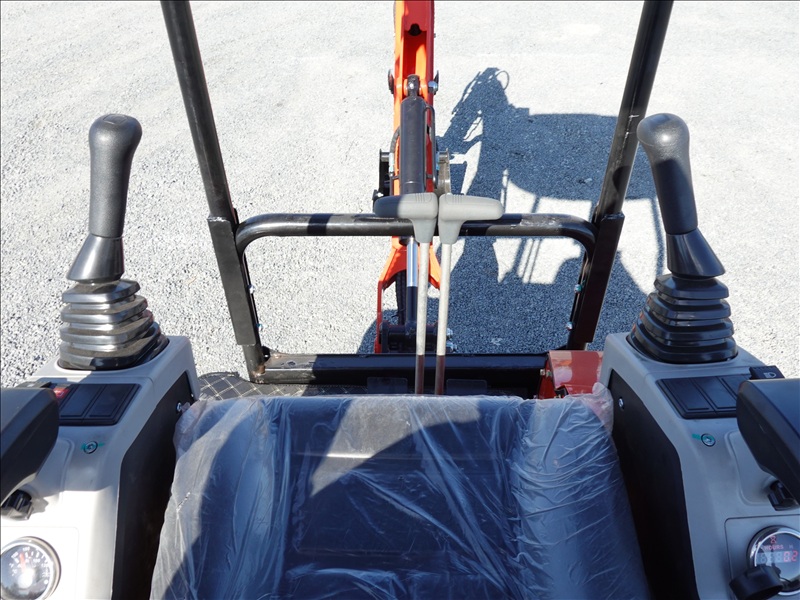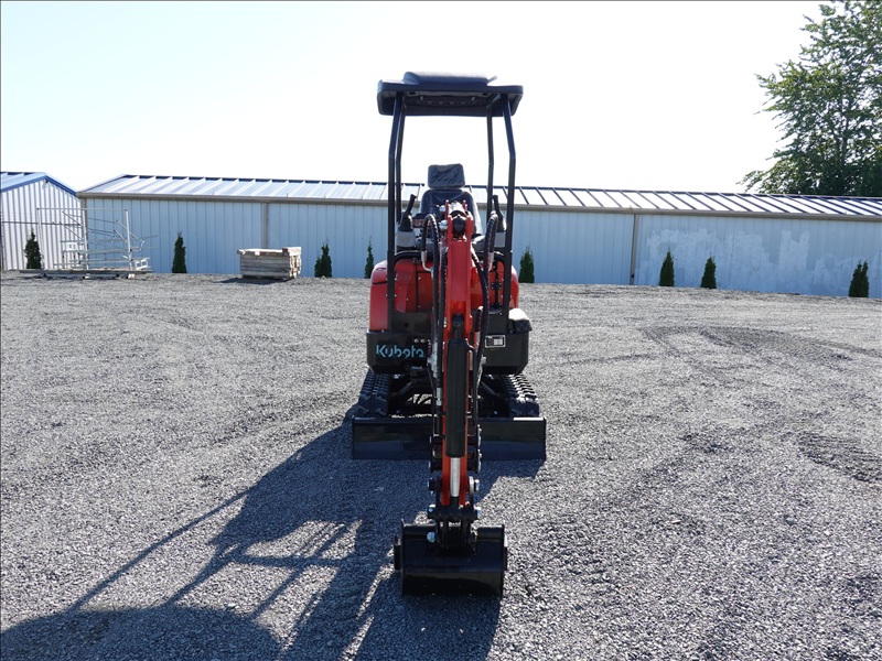 MINI EXCAVATOR, KUBOTA 3 CYL DIESEL, 13" BUCKET, HYD THUMB, AUX HYD, SWING BOOM, BLADE, RUBBER TRACKS, CANOPY