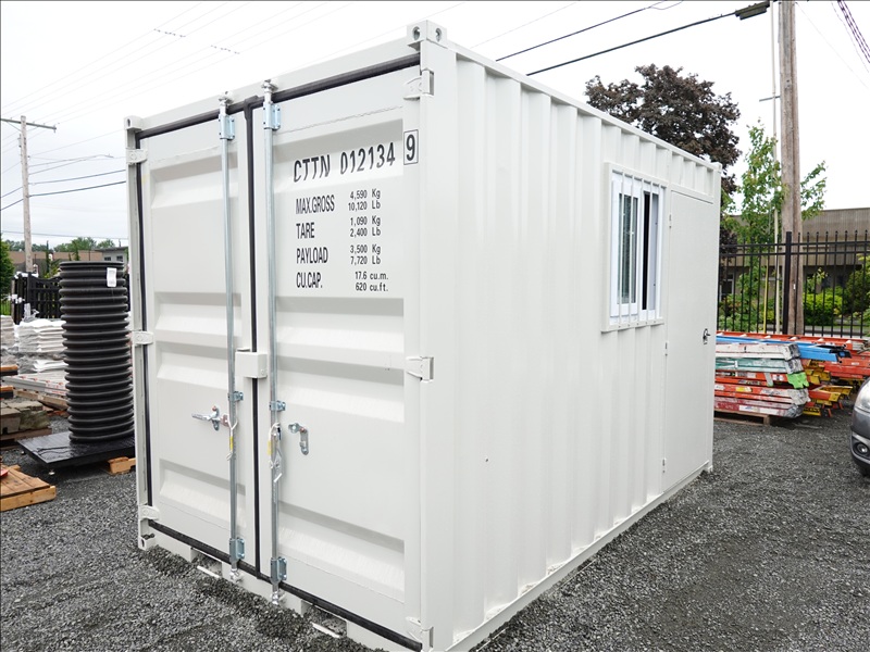PORTABLE SHIPPING CONTAINER/OFFICE W/SIDE DOOR, WINDOW, DOUBLE SWING END DOORS & FORK POCKETS