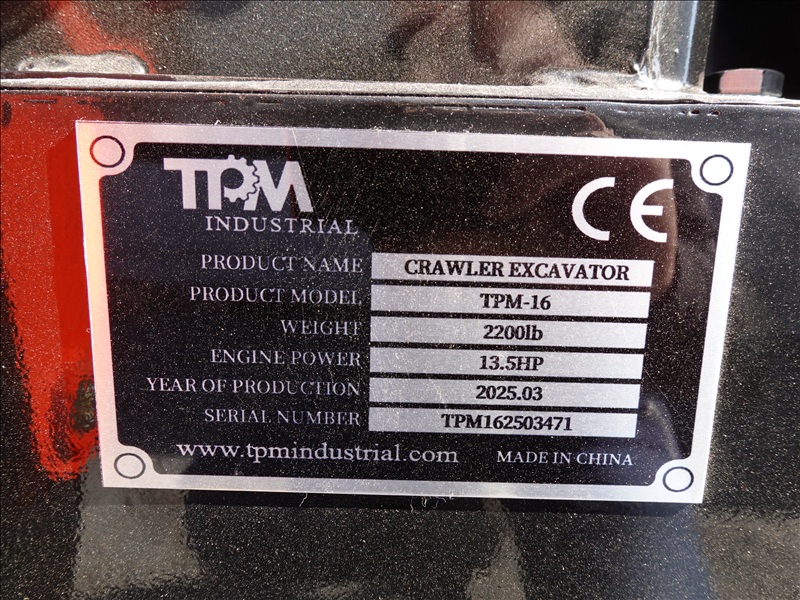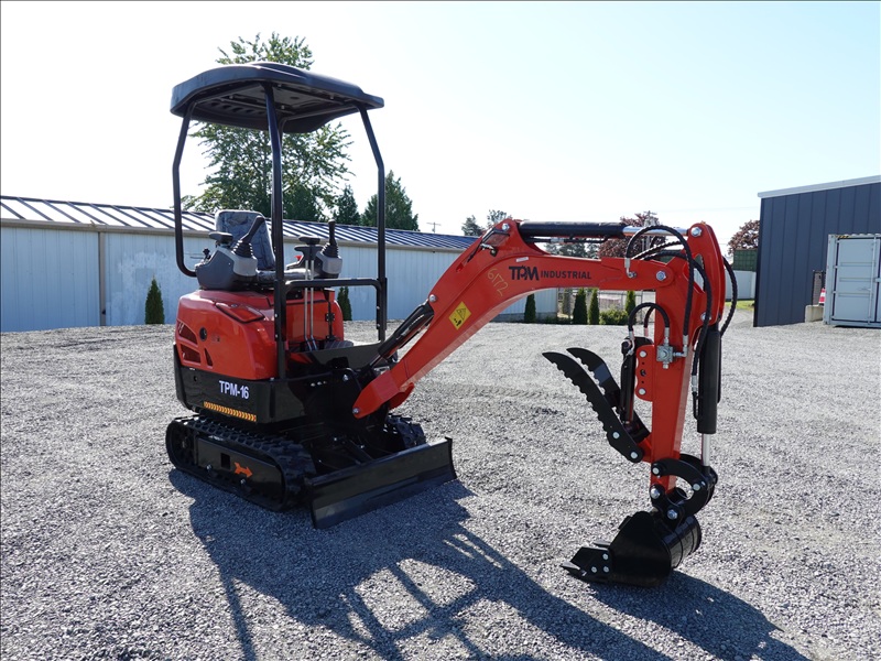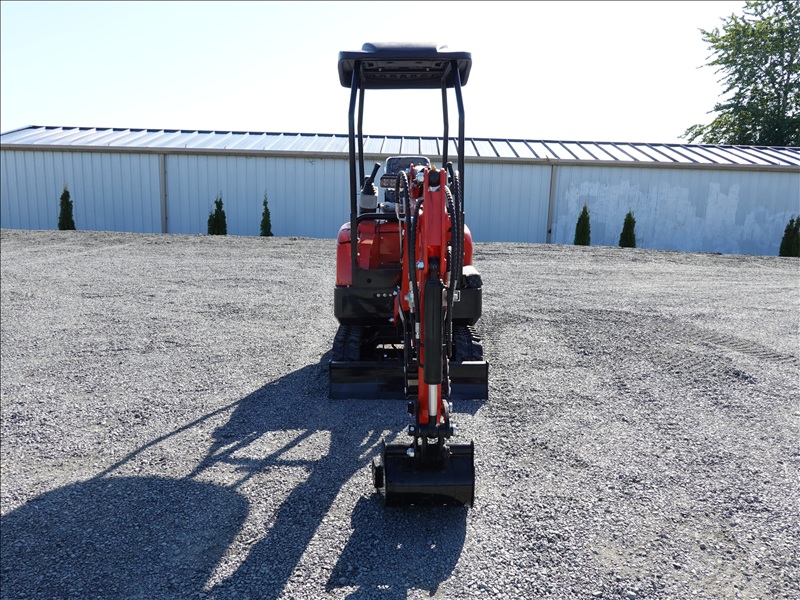 MINI EXCAVATOR, 13.5 HP BRIGGS & STRATTON GAS ENGINE, 13" BUCKET, HYD THUMB, AUX HYD, BLADE, RUBBER TRACKS, CANOPY