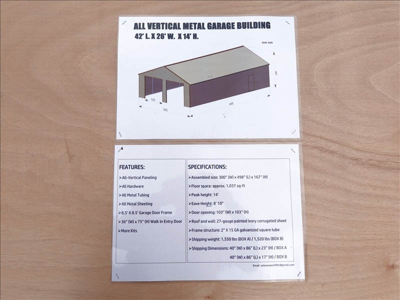 42' L. X 26' W. X 14' H. ALL VERTICAL METAL GARAGE BUILDING