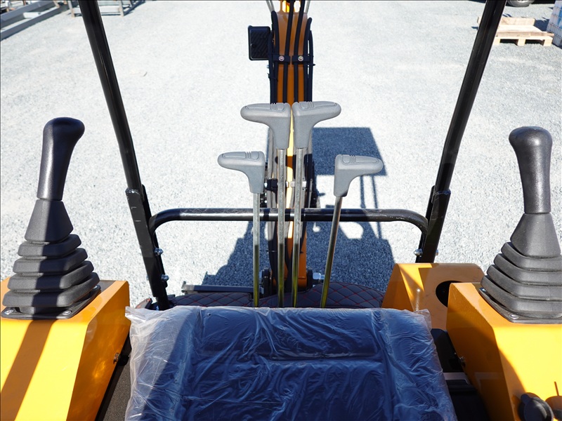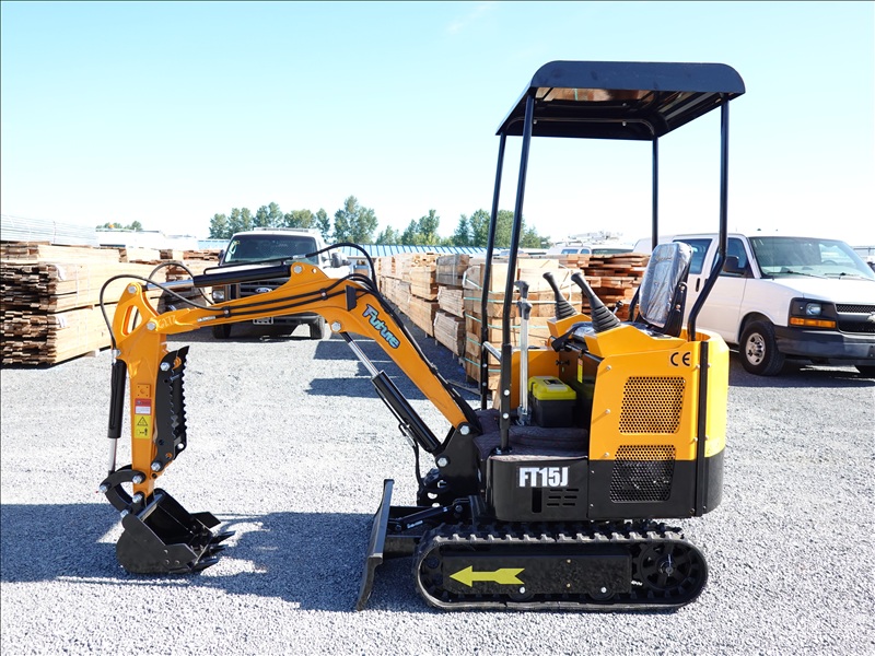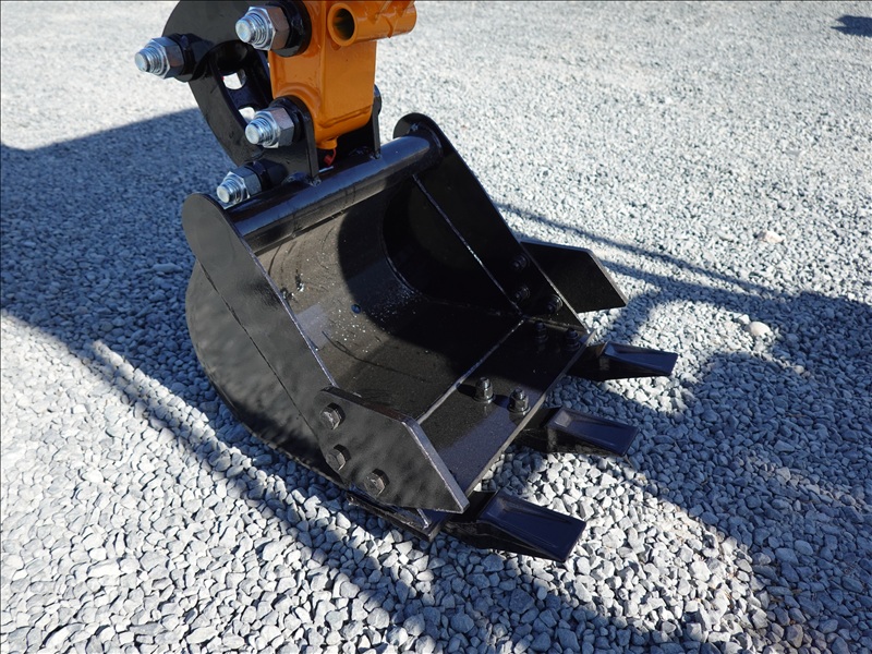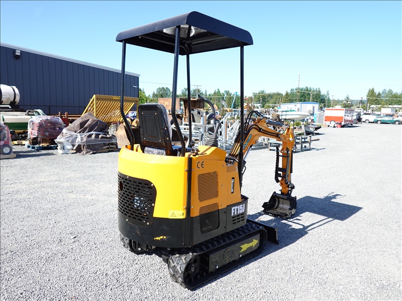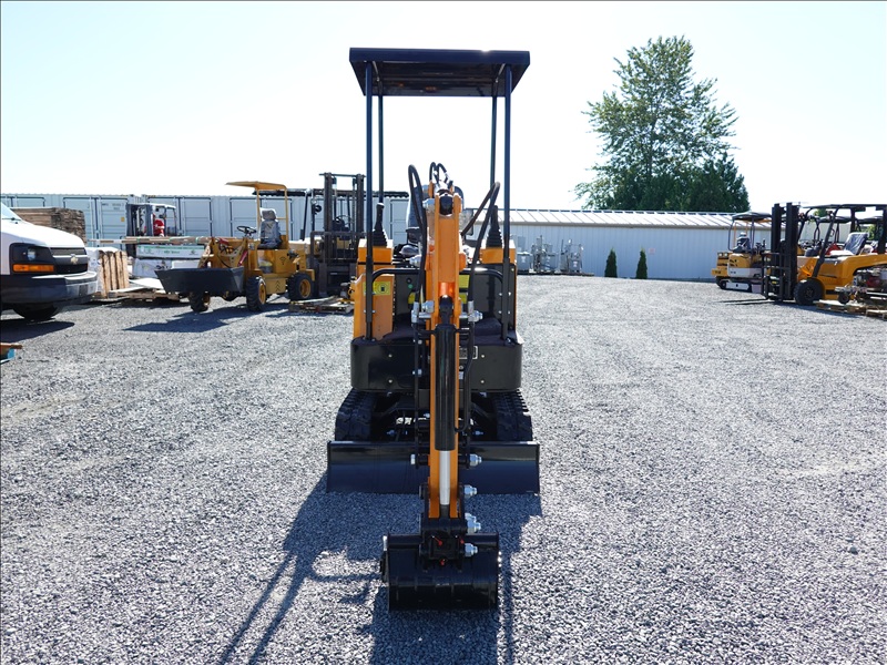 MINI EXCAVATOR, 420 CC 1 CYL GAS, 13" BUCKET, THUMB, BLADE, RUBBER TRACKS, CANOPY