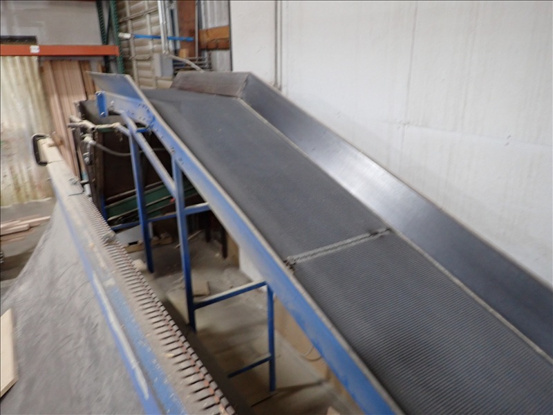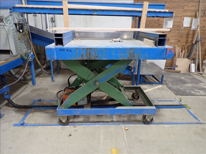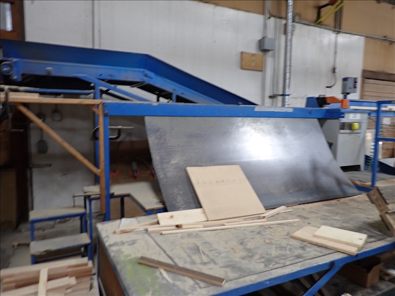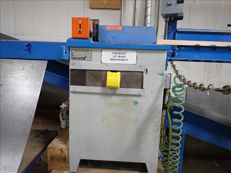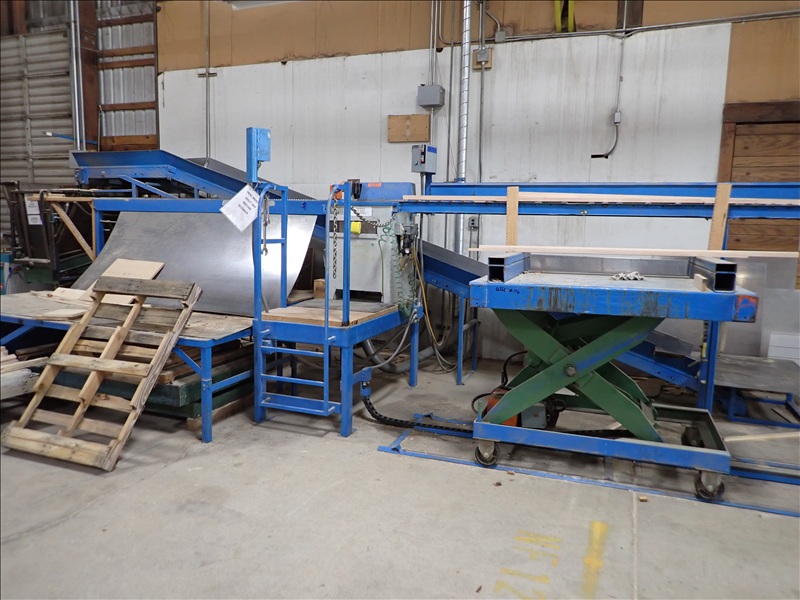 TRIM STATION W/PRECISION 14A UP CUT SAW, SCISSOR LIFT ON RAILS, 24" WASTE BELT CONVEYOR, LANDING TABLE, CATWALK