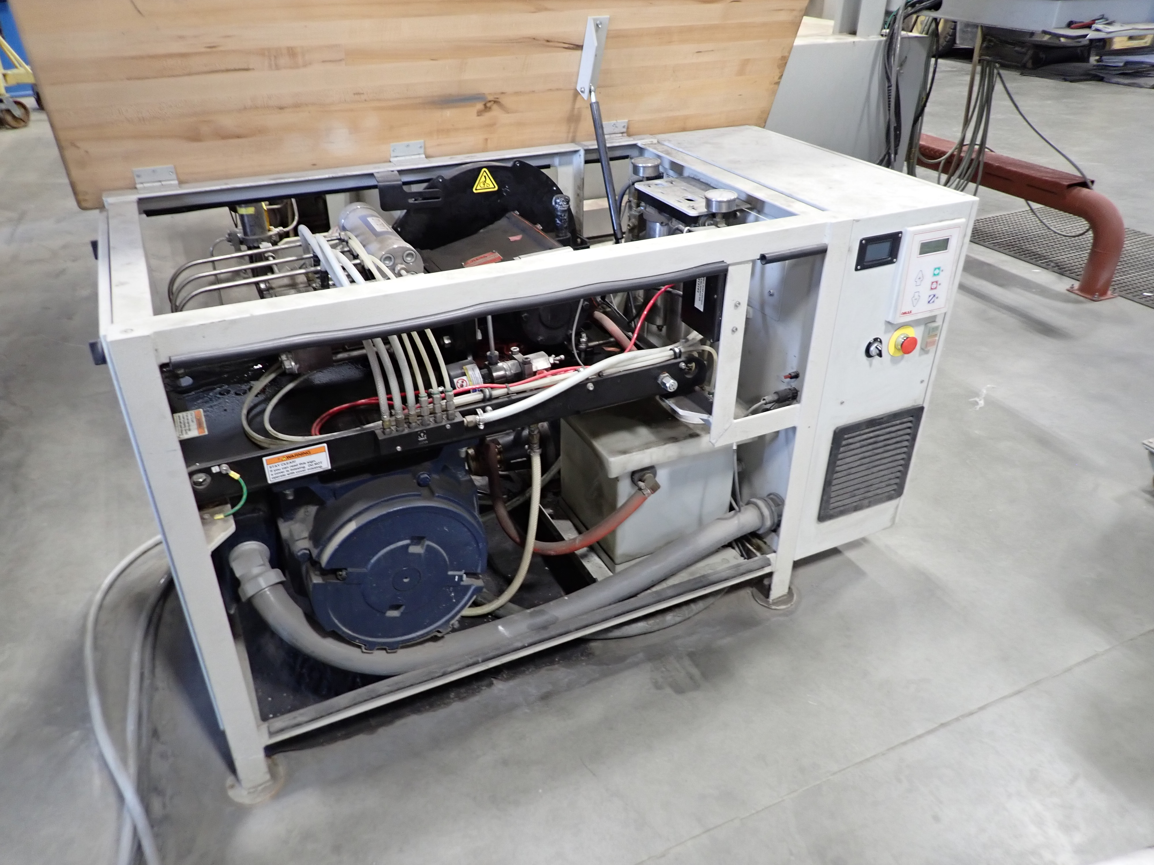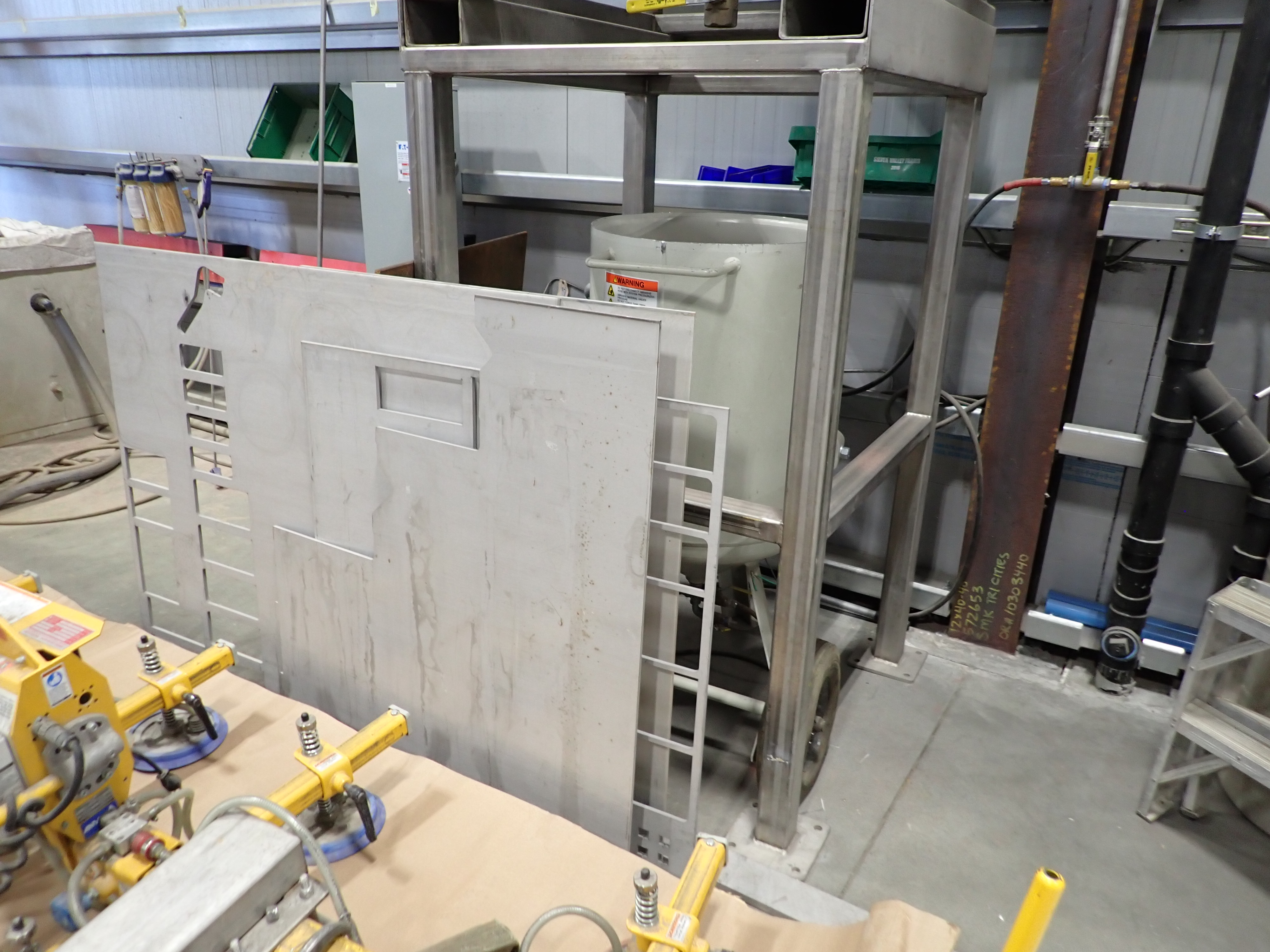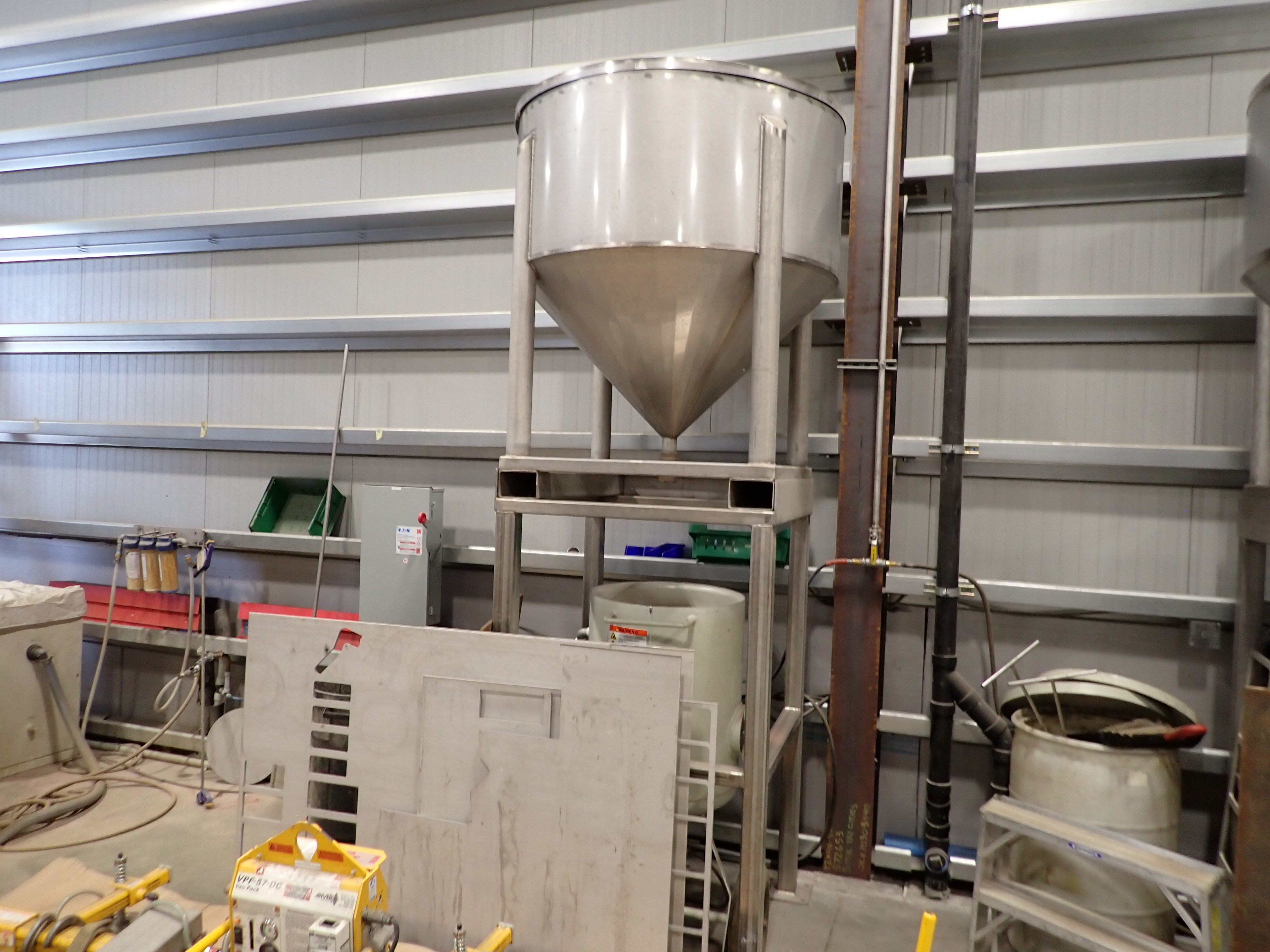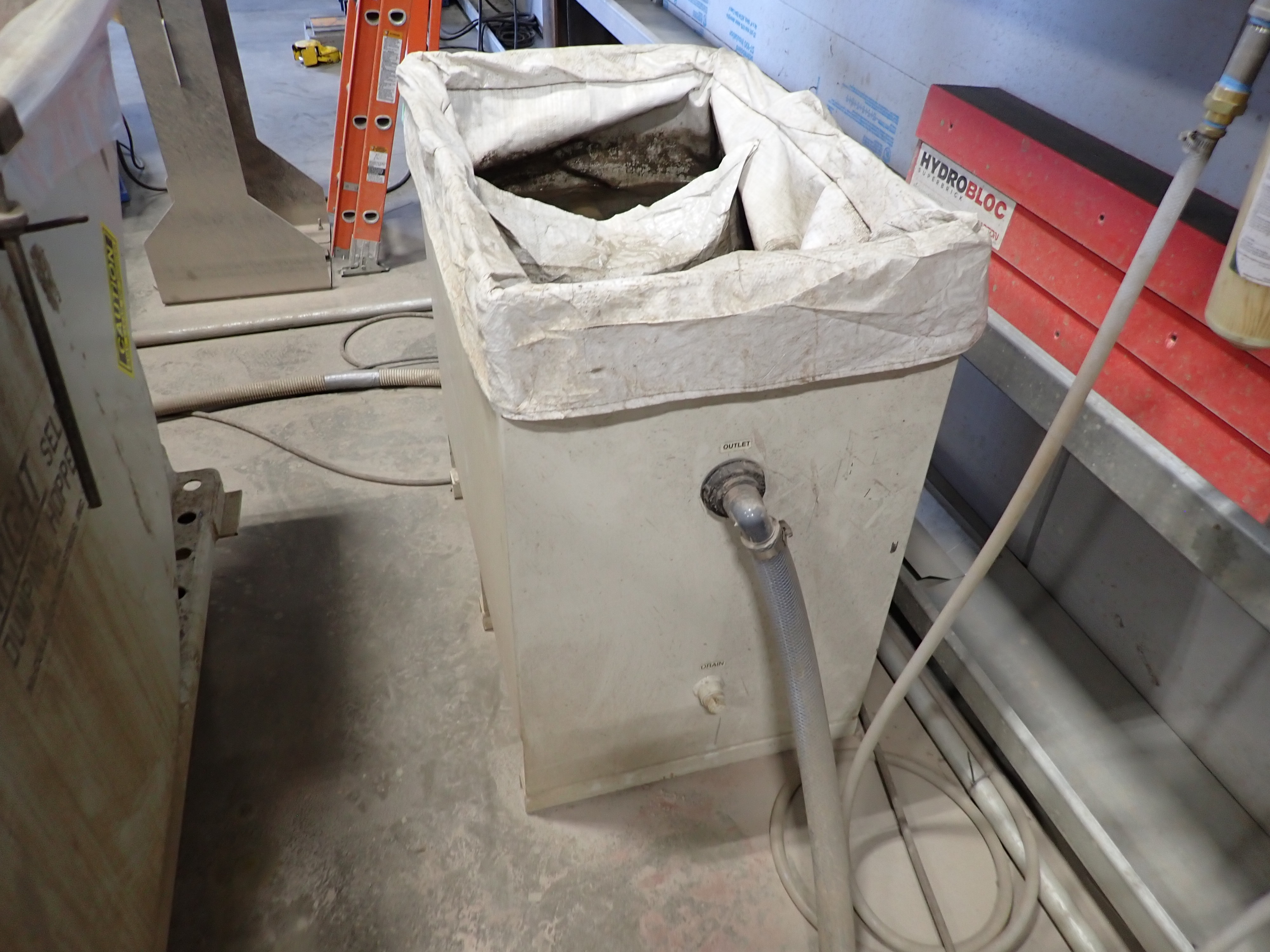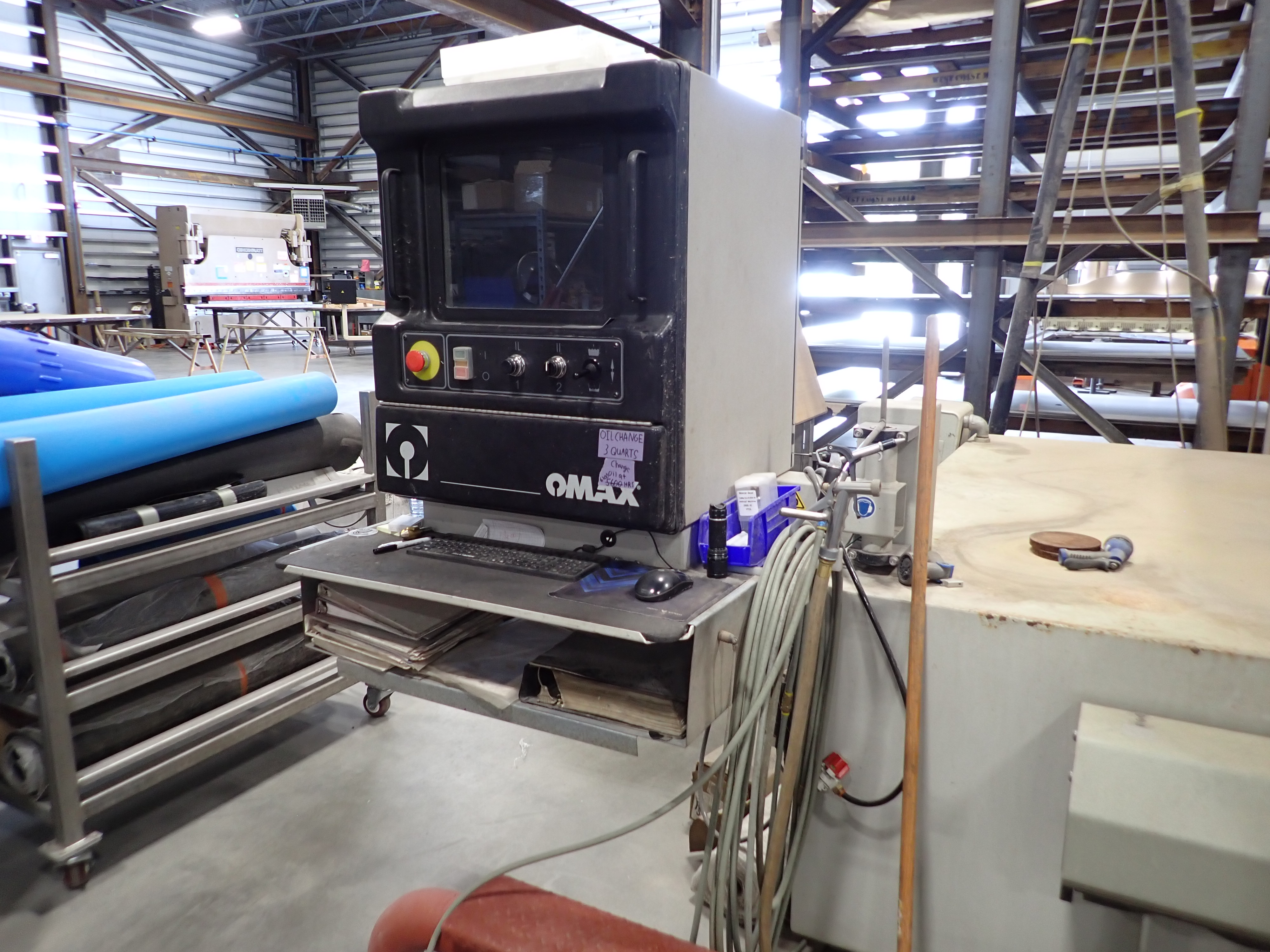 CNC WATERJET, 7'X14' TABLE, P5060V PUMP, SOLIDS REMOVAL HOPPER, EBBCO FILTER BIN, CHILLER, 6,000 LB MEDIA HOPPER, CUSTOM BUILT HOPPER FILL STATION, CONTROLS