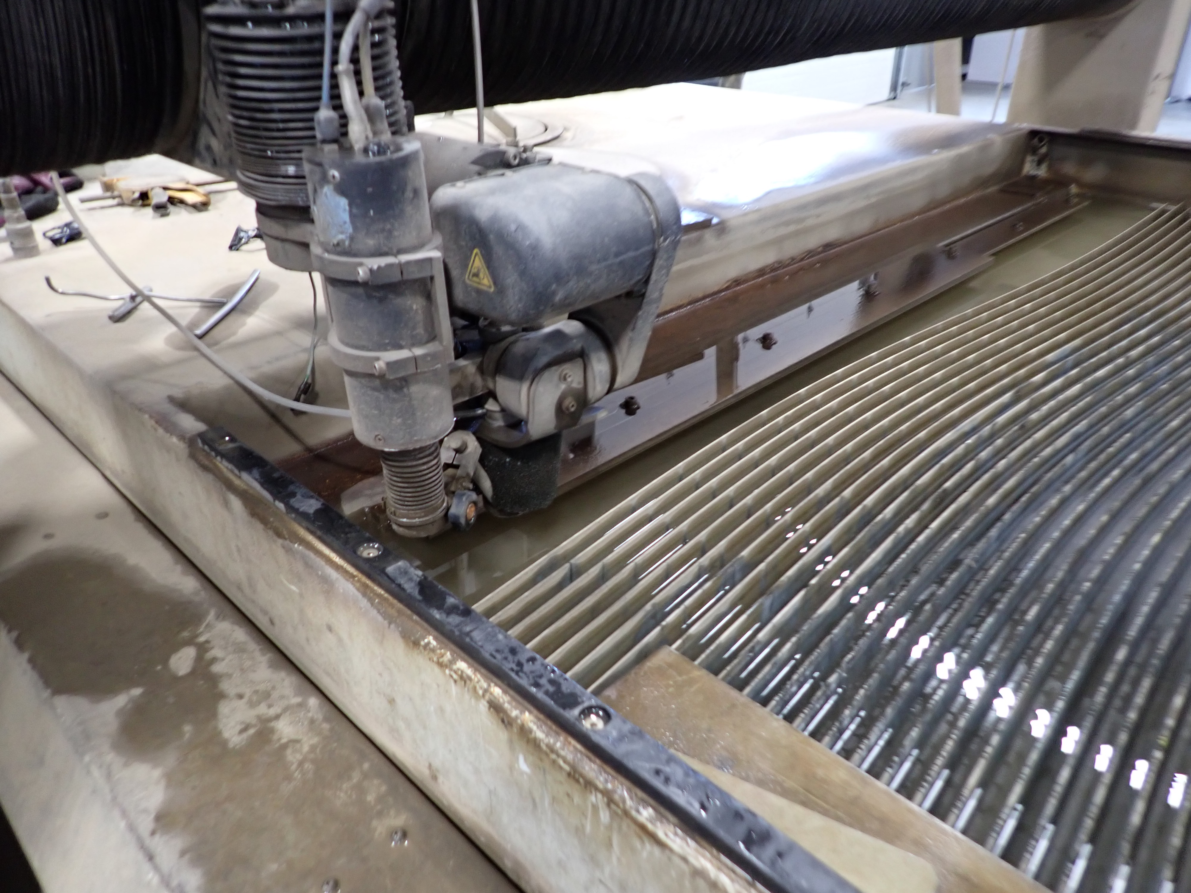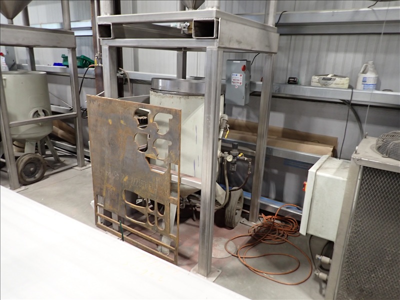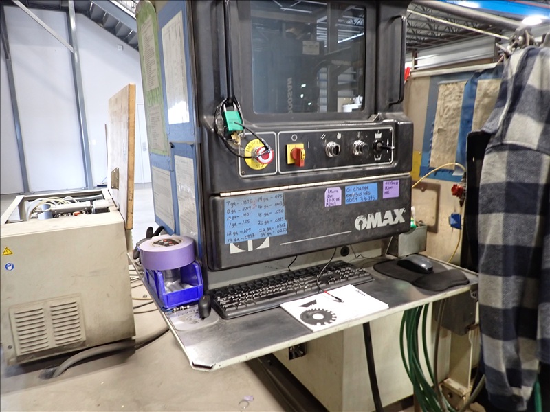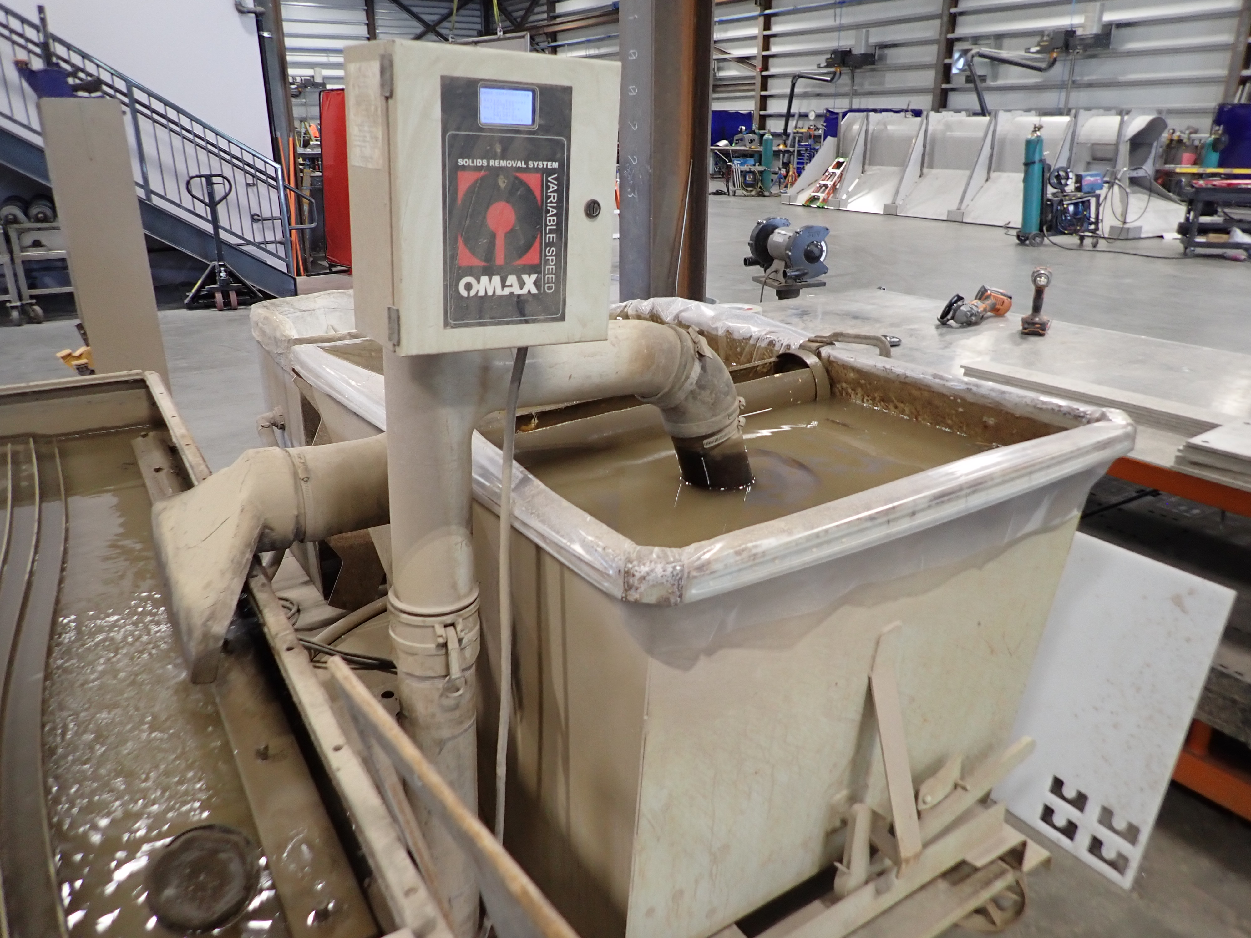 CNC WATERJET, 7'X14' TABLE, P4055V PUMP, SOLIDS REMOVAL HOPPER, EBBCO FILTER BIN, DIMPLEX CHILLER, CLEMCO 6.0CF MEDIA HOPPER, CUSTOM BUILT HOPPER FILL STATION, CONTROLS