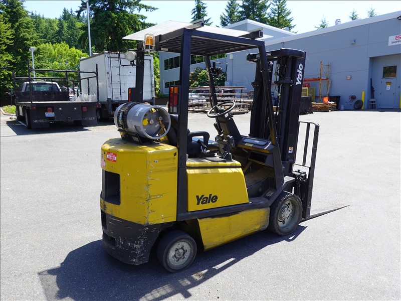 5,600LB CAP FORKLIFT. PNUEMATIC TIRES, PROPANE, ROPS, LIGHTS, 3-STAGE MAST, SIDESHIFT