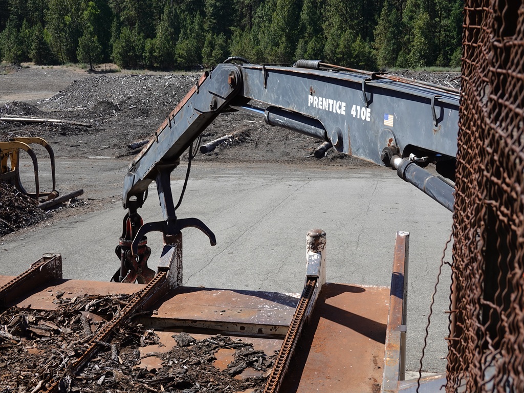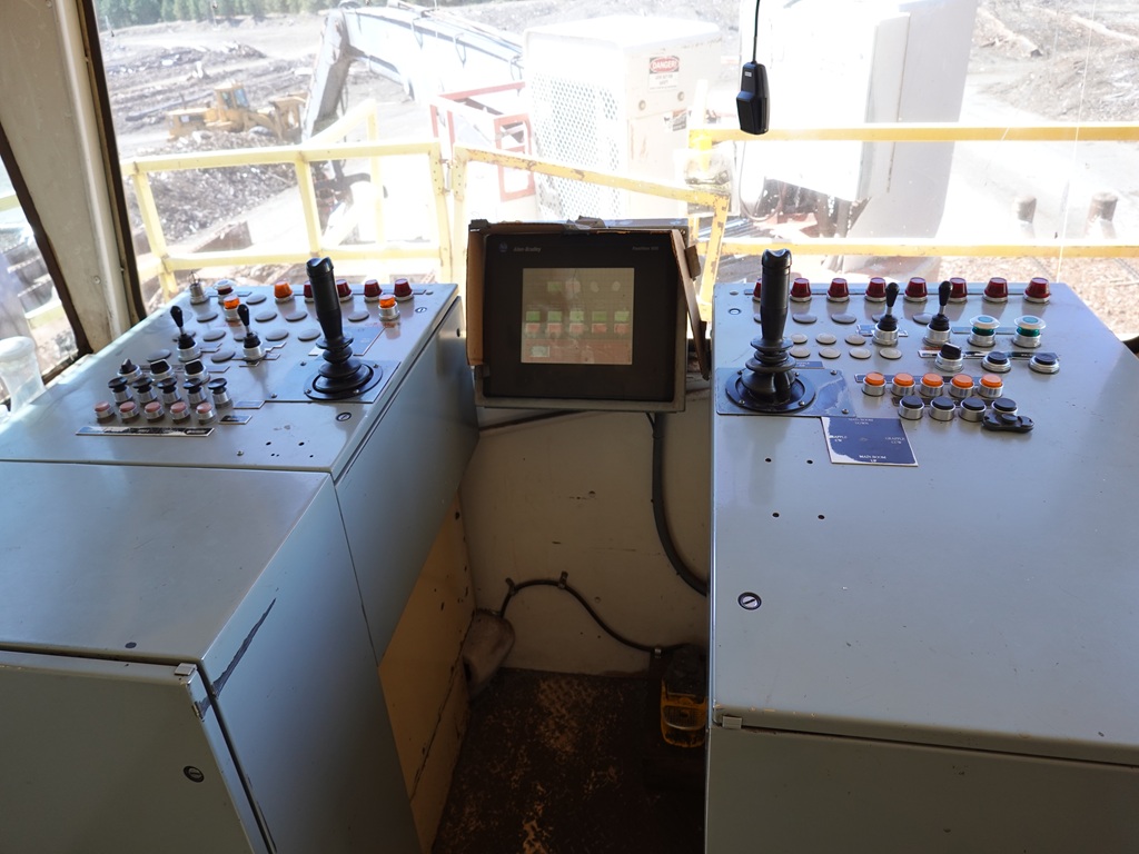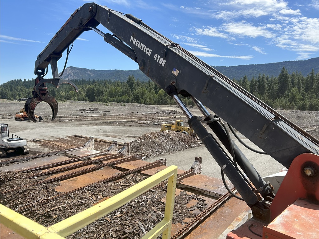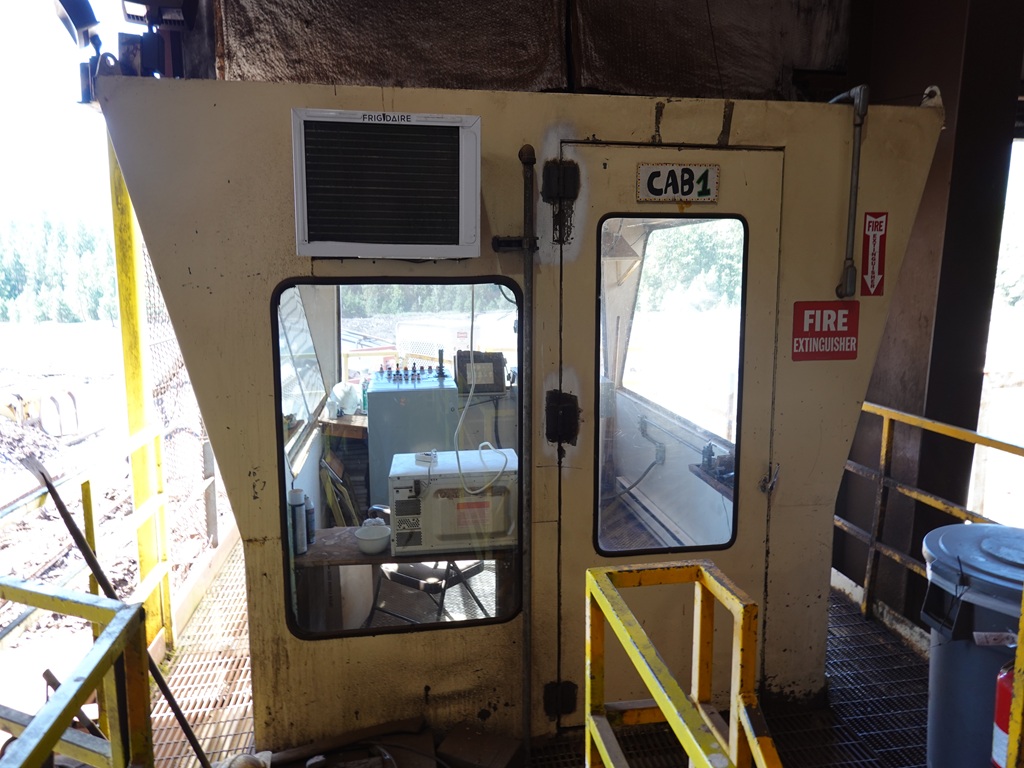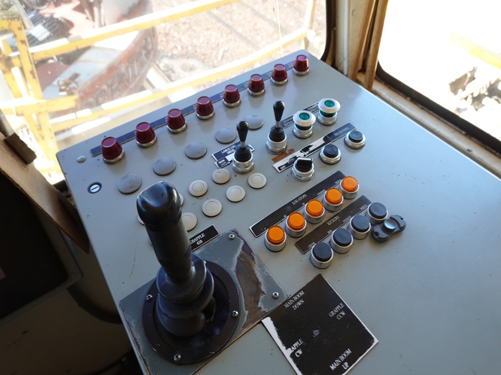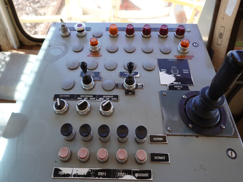 PEDESTAL MOUNT LOG LOADER, 100 HP HYDRAULIC MOTOR, OPERATORS CAB W/CONTROLS