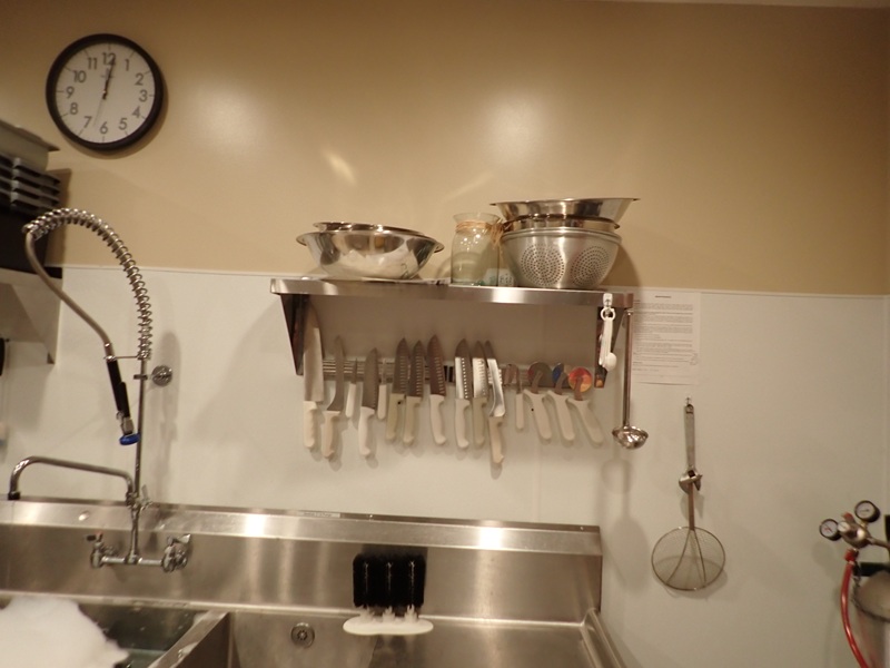 (3) S/S SHELF UNITS, KNIVES, BUS TUBS, (2) WIRE RACKS, WINE GLASS RACKS, WATER CUPS & MISC. SUPPLIES