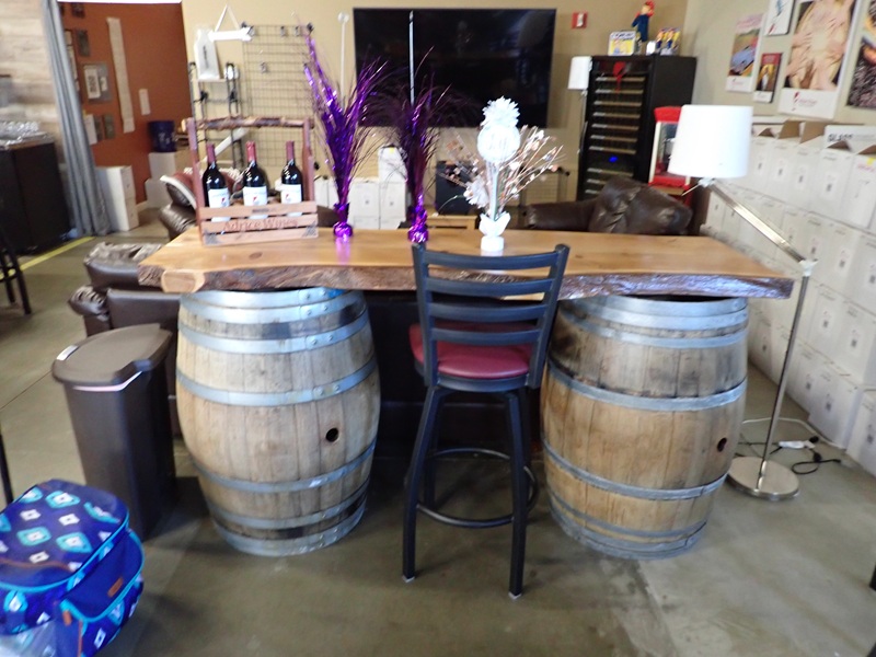 SLAB TABLE W/(2) WINE BARRELS & DÉCOR
