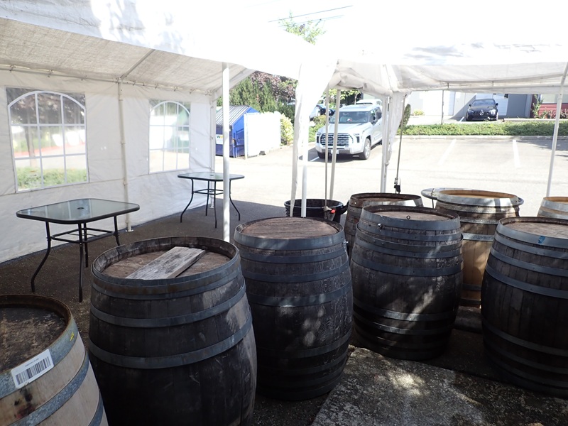 (2) TENTS W/TABLES, WINE BARRELS & MISC. DÉCOR