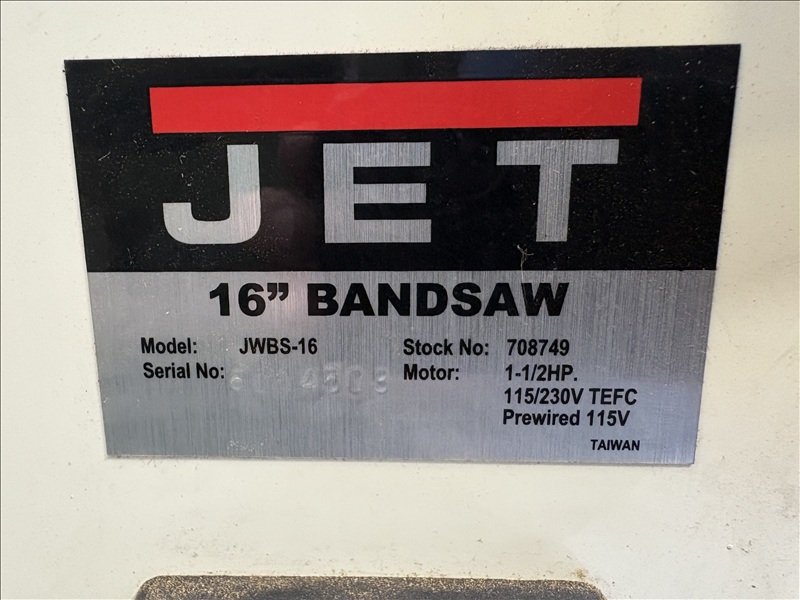16" WOODWORKING VERTICAL BANDSAW W/123" BLADE & DOLLY ON CASTERS, 7.5 HP, 115V