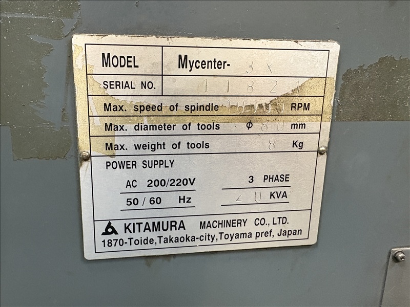 CNC VERTICAL MACHINING CENTER W/16"X36" TABLE, 20-STATION SIDE MOUNT ATC, CAT 40, 10,000 RPM SPINDLE, YASNAC CONTROLS, 20 KVA, 200-220V, 3 PHASE (NO FEET INCLUDED)