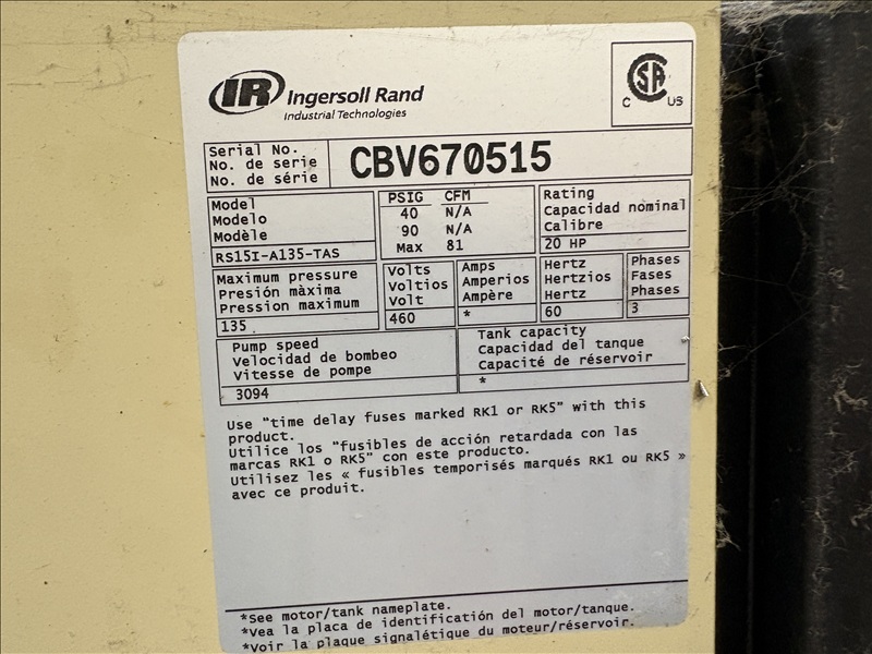 20 HP ROTARY SCREW TOTAL AIR CENTER, 460V, 3 PHASE