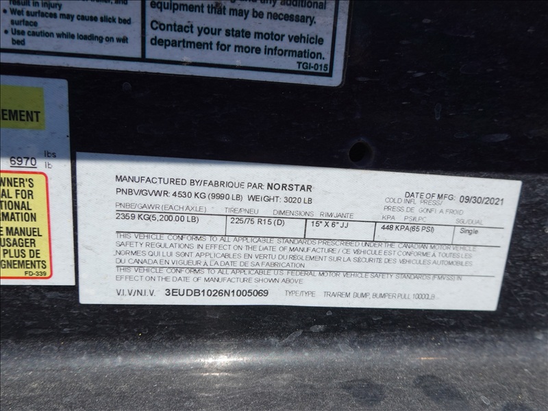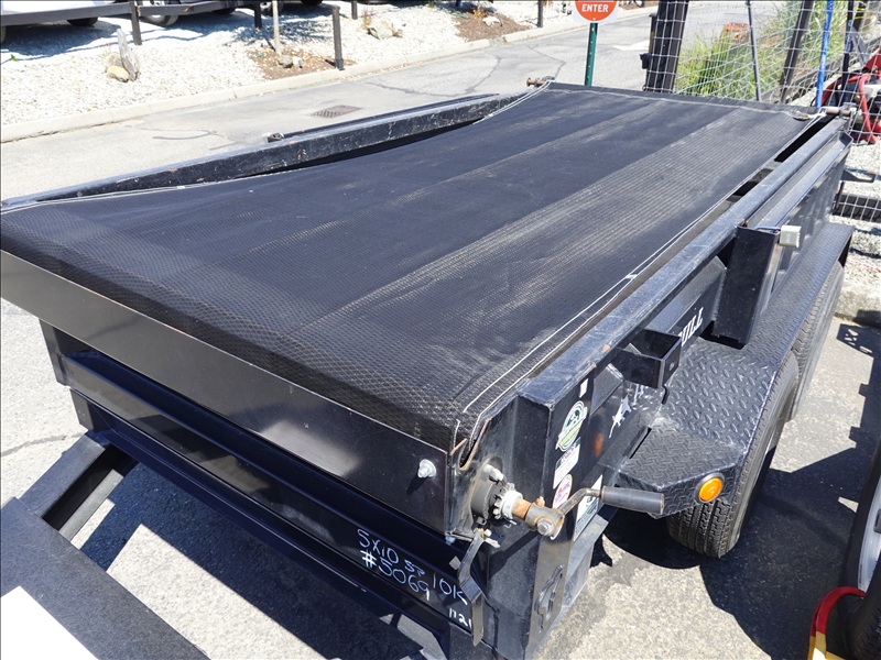 TANDEM AXLE 5'X10' DUMP TRAILER, LOADING RAMPS, TARP SYSTEM, 10K
