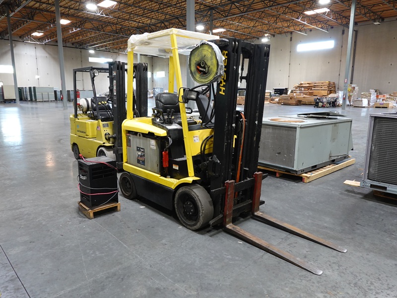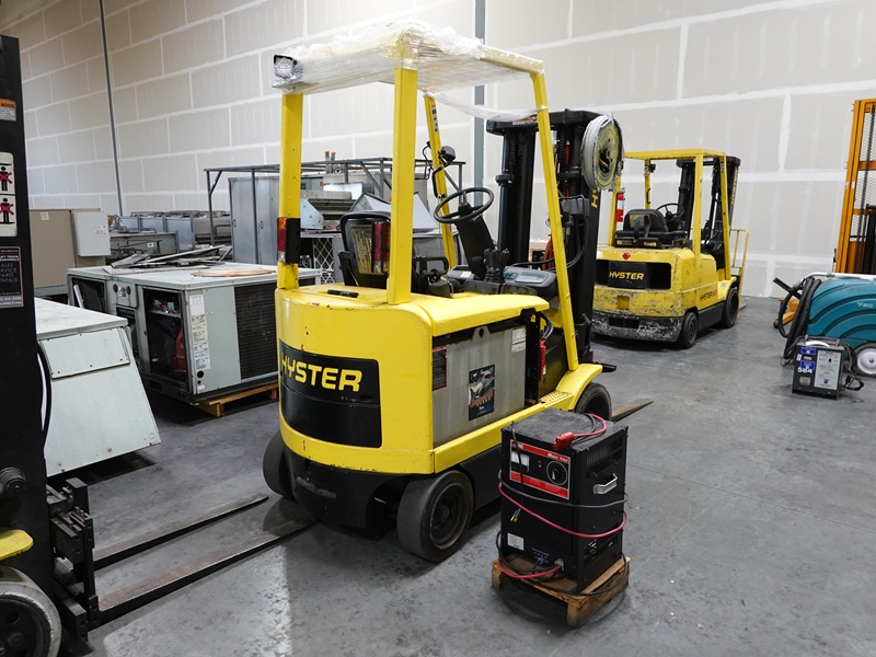 5,000 LB SOLID TIRE ELECTRIC FORKLIFT W/189" 3-STAGE MAST, LIGHTS, TILT, MAC MULTIVOLMCM50A, 120/208/240V, SINGLE PHASE CHARGER (SIDESHIFT & EBRAKE NEED REPAIR)