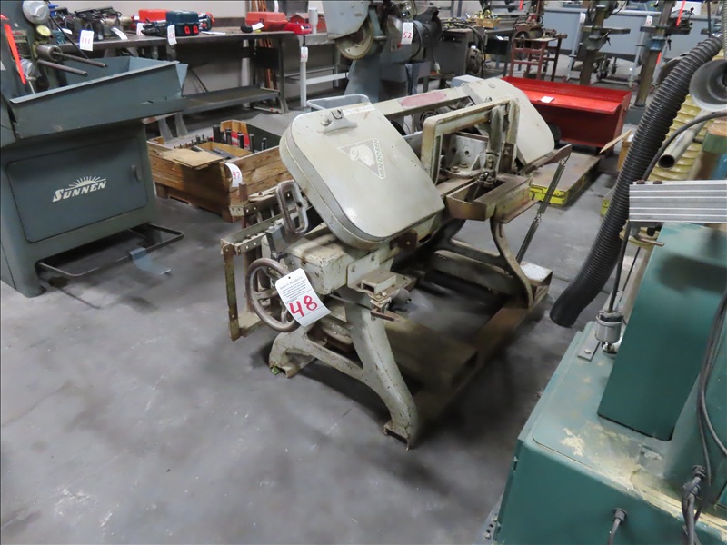 HORIZONTAL BANDSAW WITH INFEED/OUTFEED ROLLER CONVEYORS & ASSORTED BLADES, 230V, SINGLE PHASE