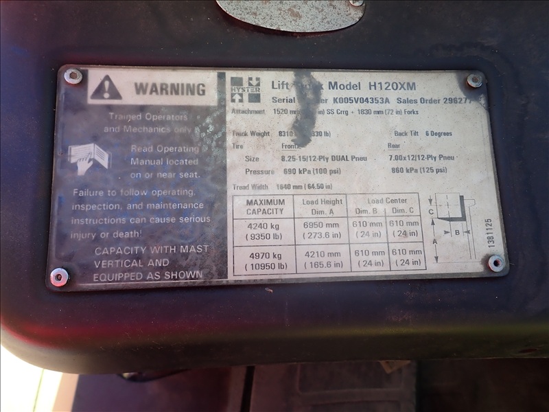 10,950 LB DUAL PNEUMATIC TIRE DIESEL FORKLIFT, 2-STAGE MAST, SIDE SHIFT, 48" FORKS, HOUR METER READS: 9,280