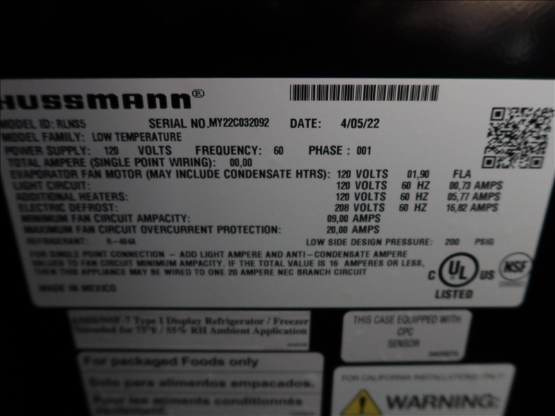 (8) 2022 HUSSMANN RLN55 5-DOOR REACH-IN FREEZER CASES & (1) HUSSMANN RLNS4 4-DOOR REACH-IN FREEZER CASE