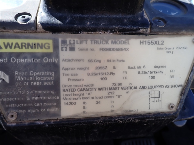 14,200 LB FORKLIFT, PERKINS DIESEL, 212" 2 STAGE MAST, SIDE SHIFT