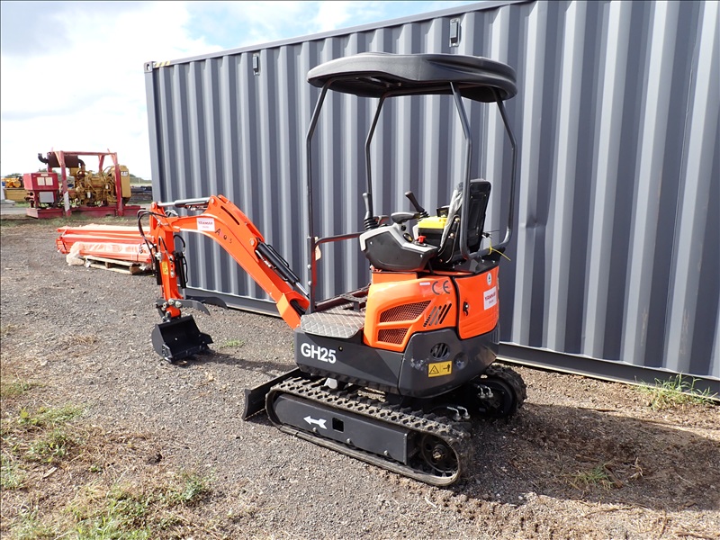MINI EXCAVATOR, BUCKET, MECHANICAL THUMB, SWING BOOM, BLADE, CANOPY, RUBBER TRACKS