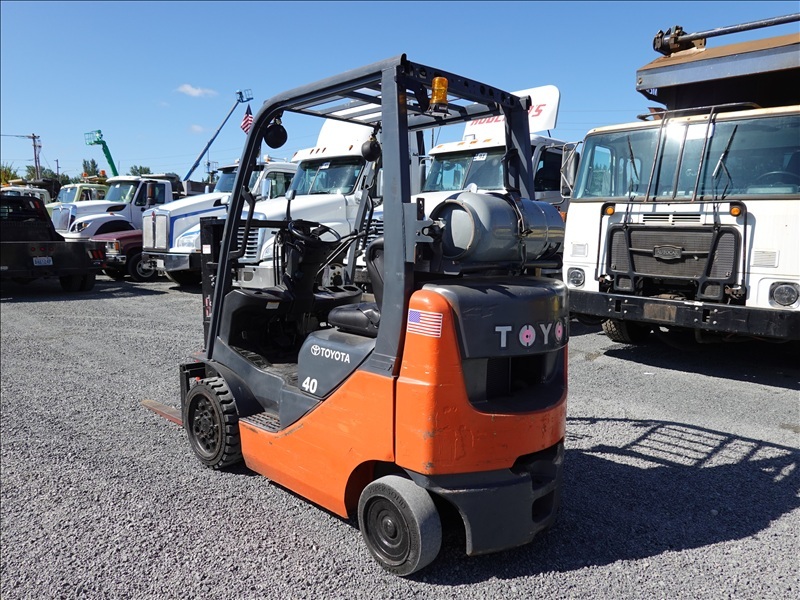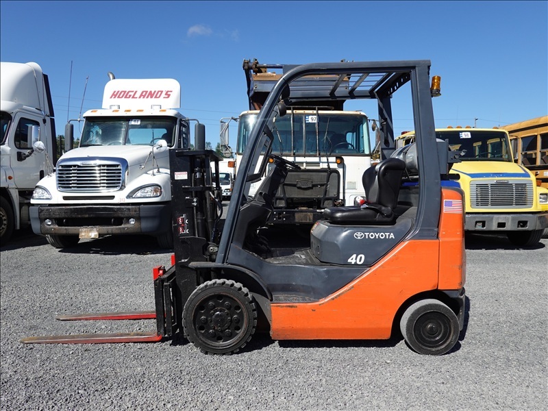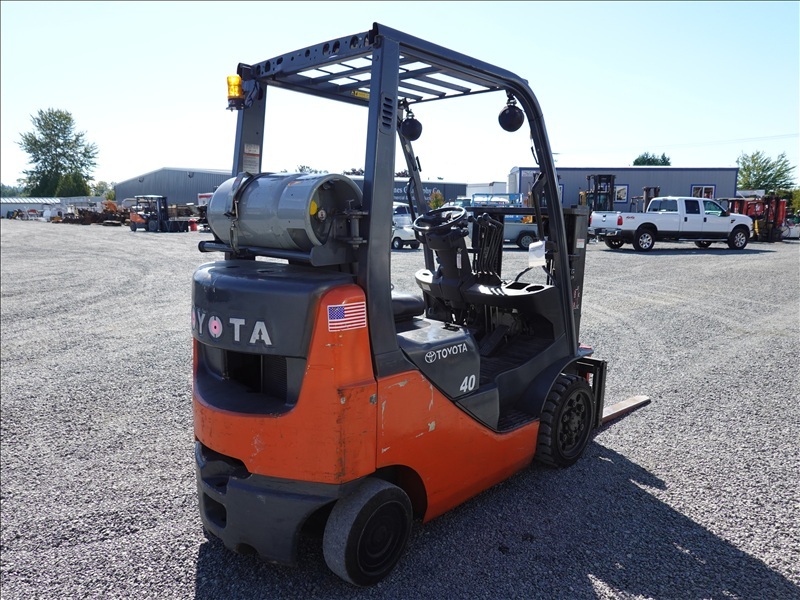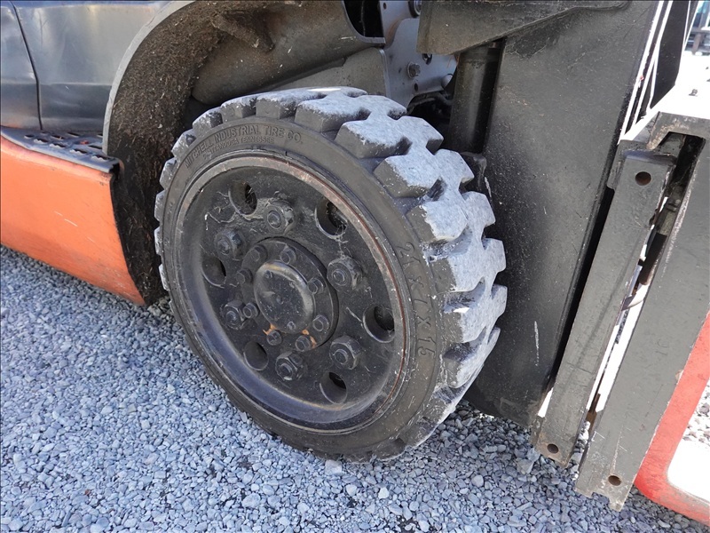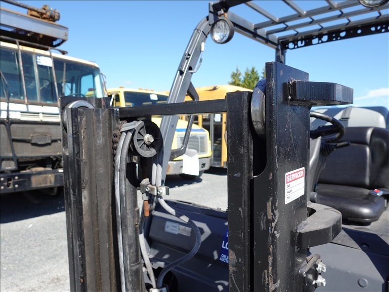 3,800 LB SOLID TIRE FORKLIFT, 80" FORK HEIGHT, 2-STAGE MAST, SIDE SHIFT, 4 CYL LPG