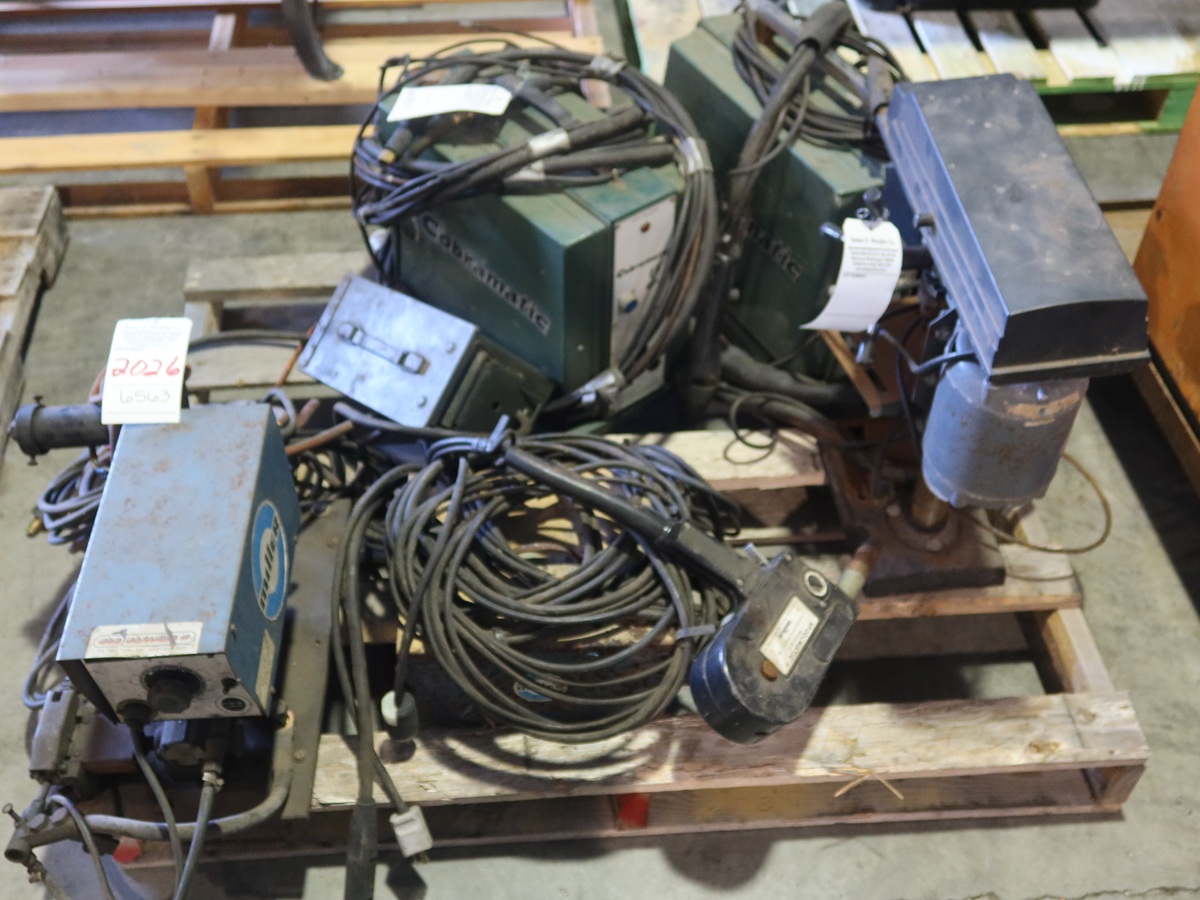 LOT, ASSORTED MILLER, COBRAMATIC WELDING EQUIPMENT & DELTA DRILL PRESS ON THIS PALLET (NEEDS REPAIR)