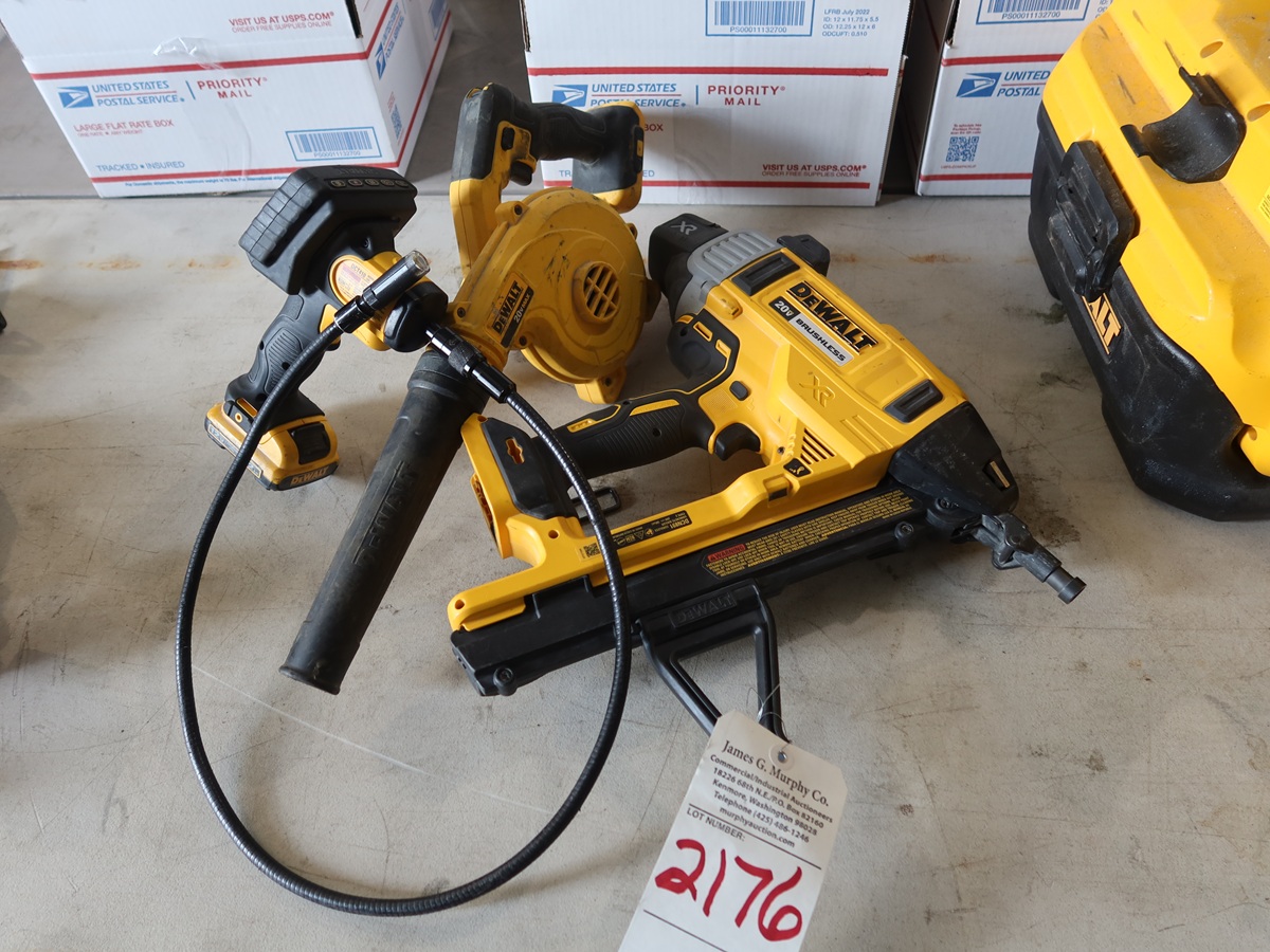 LOT, (3) ASSORTED DEWALT CORDLESS TOOLS TO INCLUDE: CONCRETE NAILER, DCE100 CORDLESS BLOWER, 20V & CORDLESS INSPECTION CAMERA W/12V BATTERY (NO 20V BATTERIES OR CHARGERS)