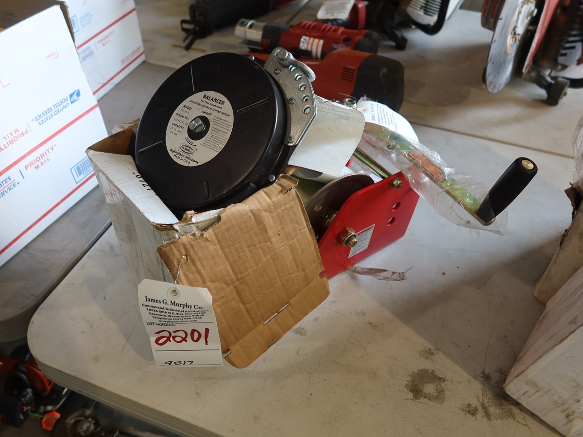 LOT, (2) ASSORTED DAYTON WORM GEAR HAND CRANK WINCHES & (1) HUBBELL BG-15-L TOOL SUSPENSION BALANCER, 10-15 LB CAP