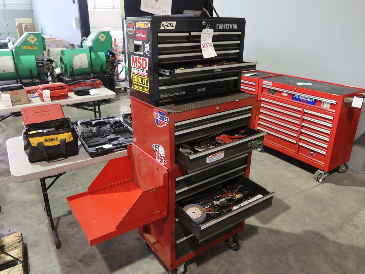 LOT, 26" 3-SECTION TOOLBOX ON CASTERS W/ASSORTED TOOLS