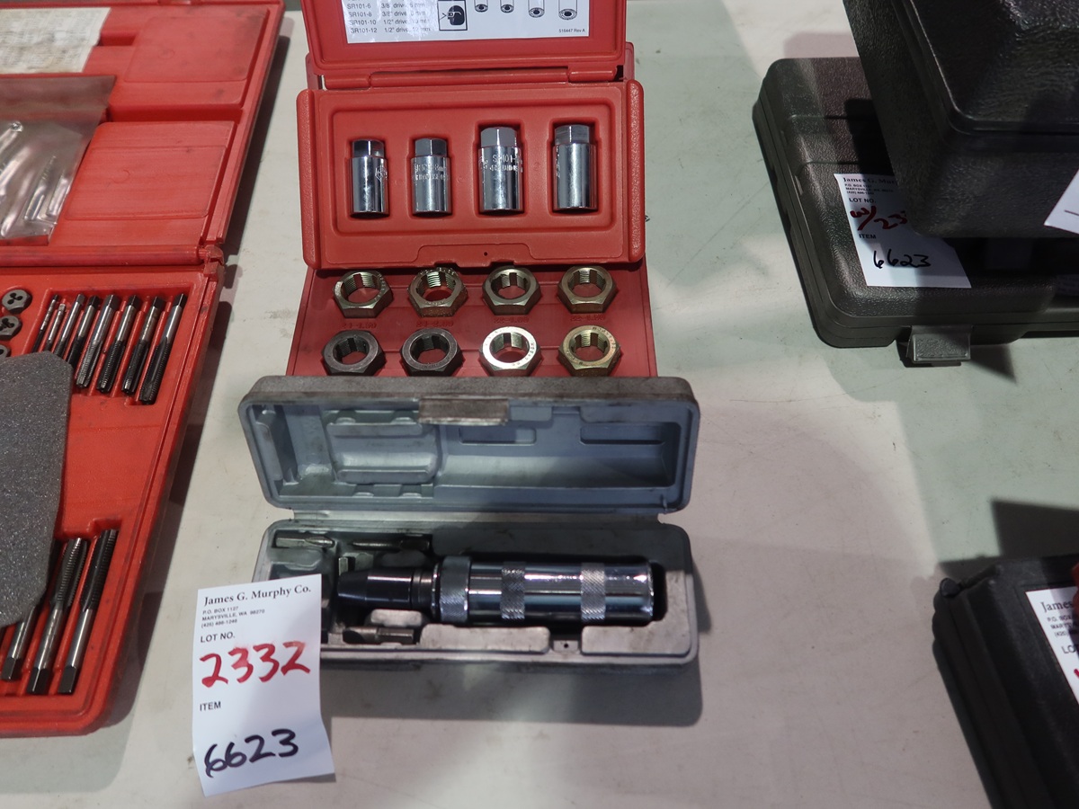 LOT, MATCO TOOL SR101 STUD REMOVER SET, IMPACT DRIVER & MAC TOOLS TR2579A SPINDLE RETHREADER SET