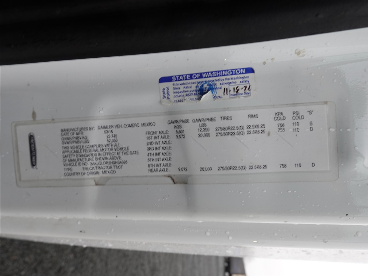 T/A, SLEEPER, TRACTOR, 505 HP DETROIT DD15, AUTO, AIR SUSPENSION, 232" W/B, 12,350 LB FRONT, 40,000 LB REARS, SLIDER, A/B
