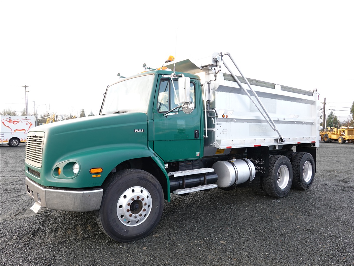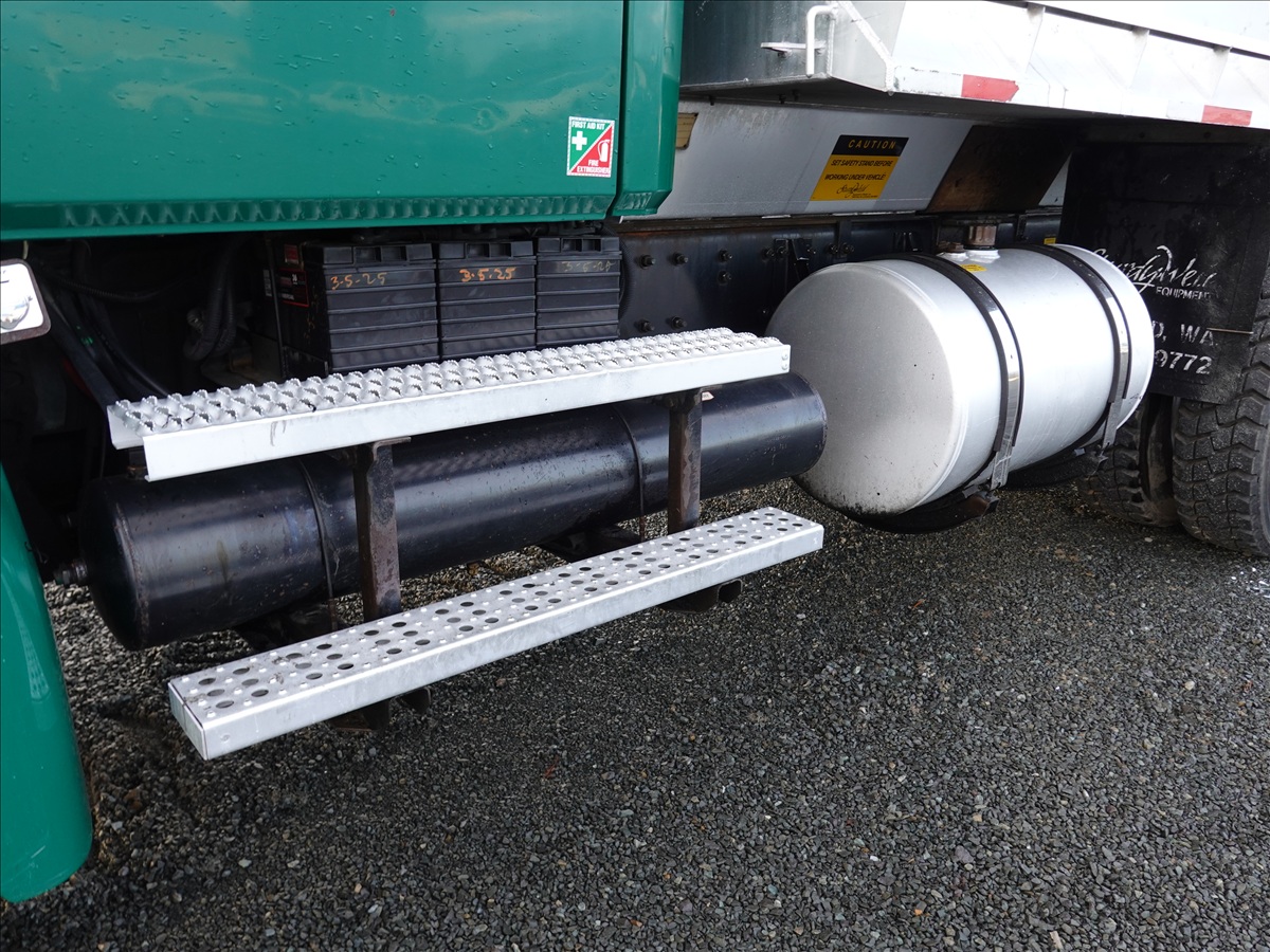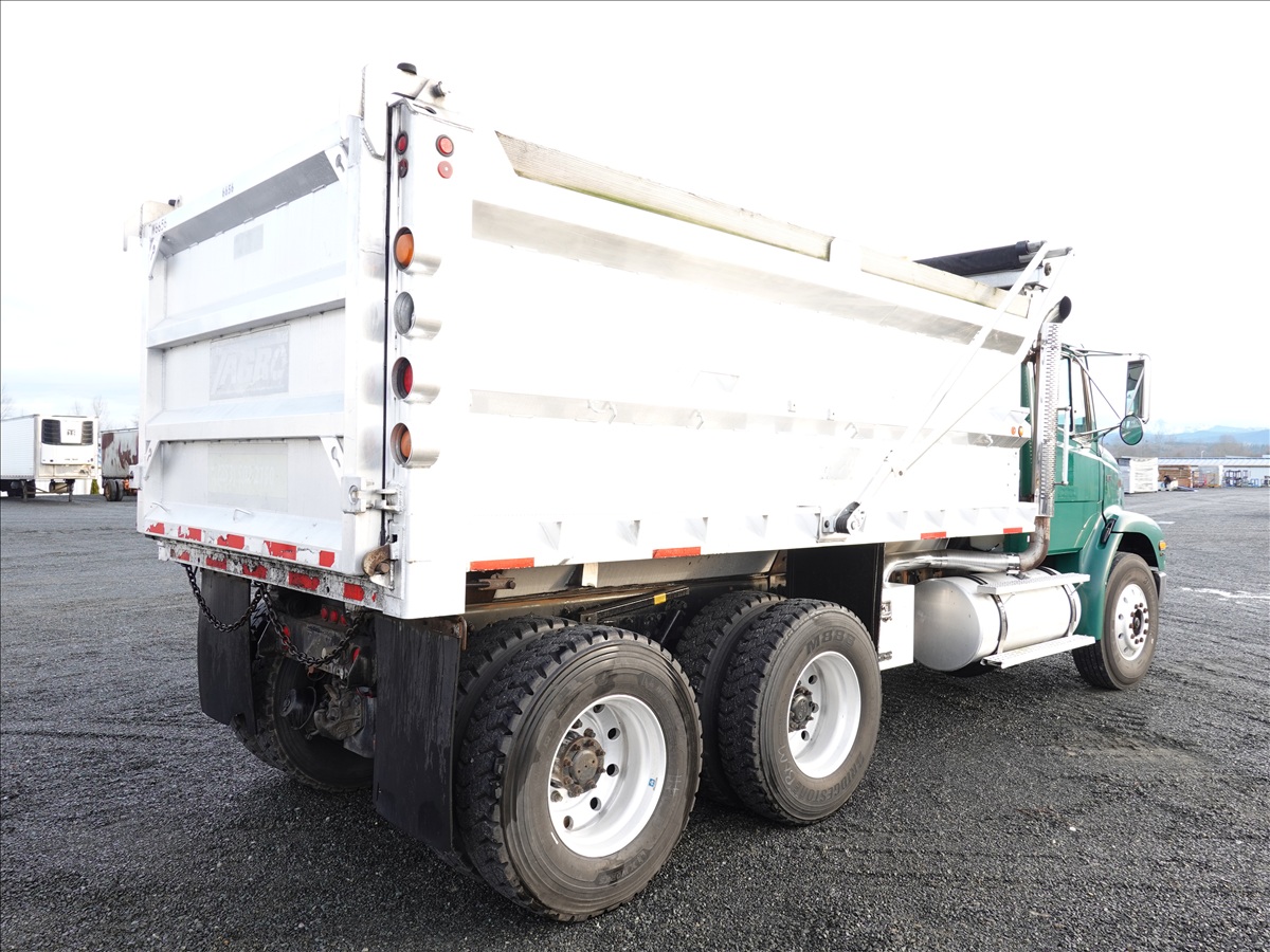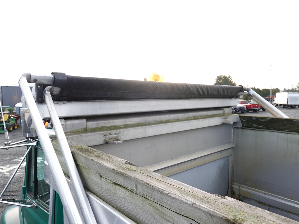 T/A, DUMP TRUCK, 15' ALUMINIM BOX, TARP SYSTEM, CUMMINS MII, AUTO, CHALMERS SUSPENSION, 193" W/B, 14,000 LB FRONT, 40,000 LB REARS, A/B