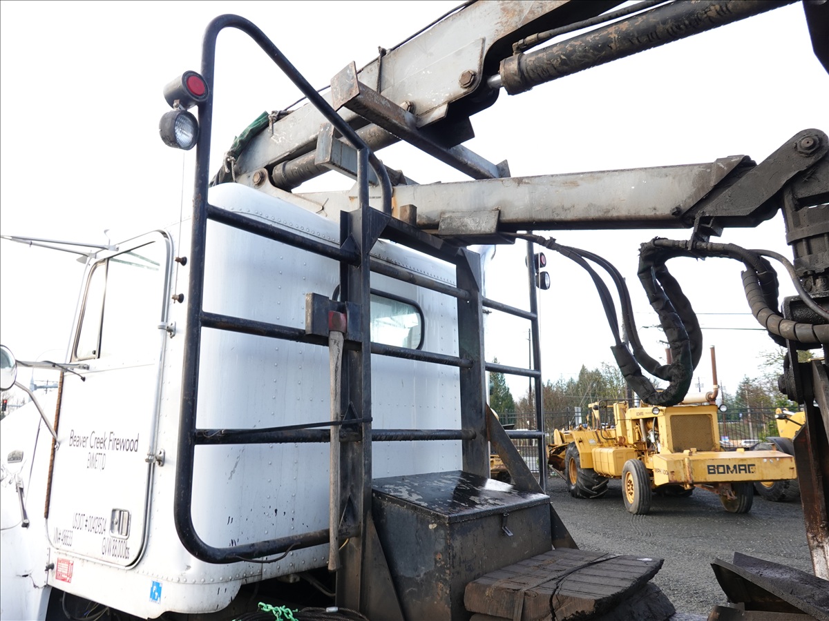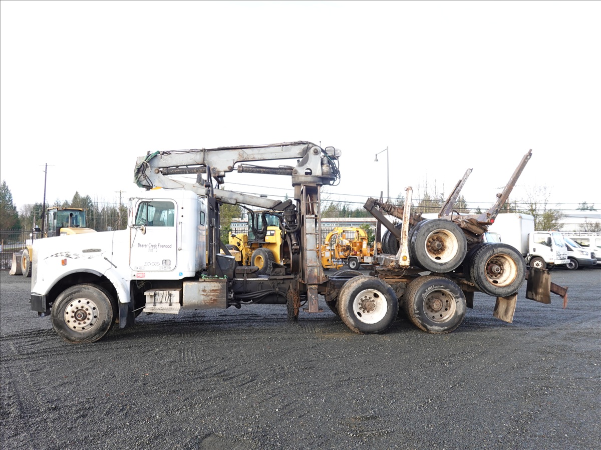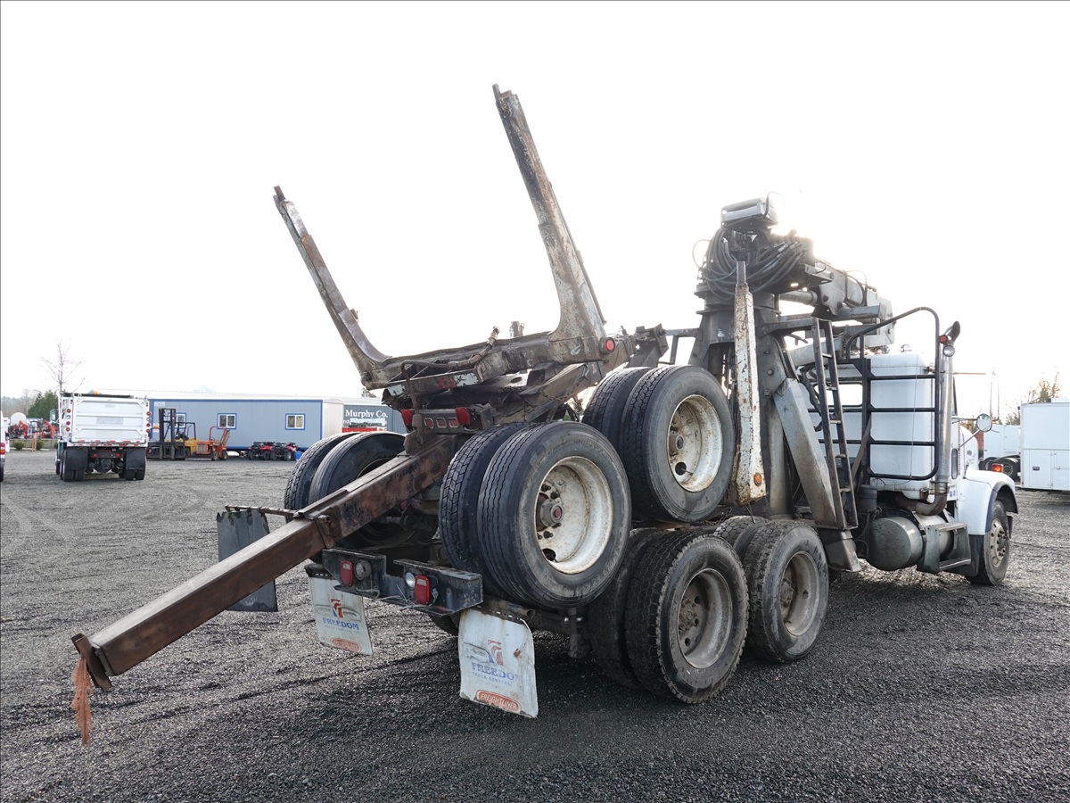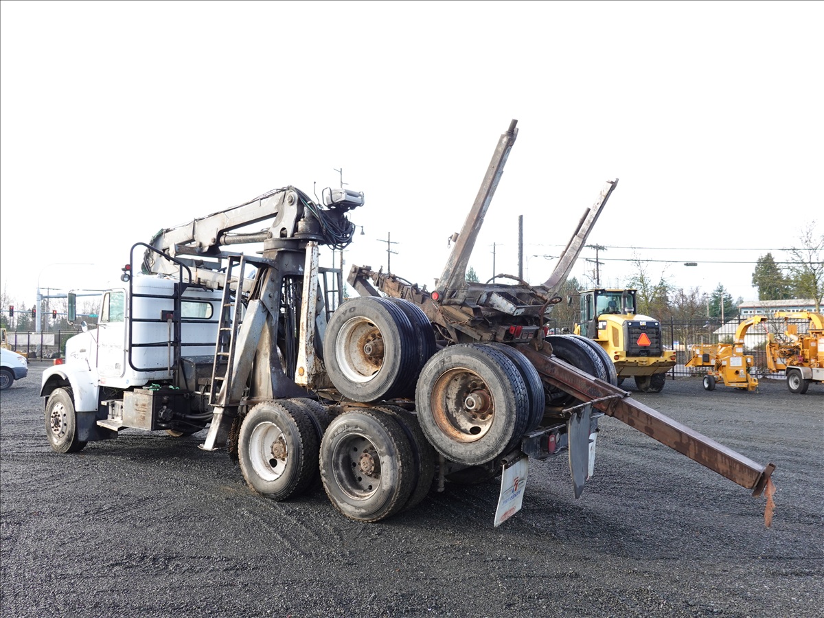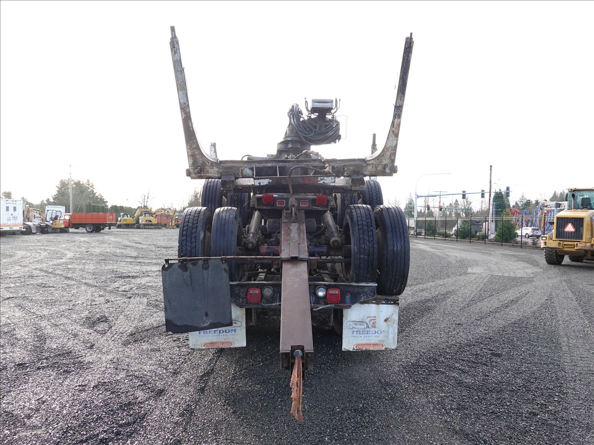 T/A, LOG TRUCK, SELF LOADER W/HYD OUTRIGGERS, 444 HP CUMMINS NTC, 13 SPD, AIR SUSPENSION, 231" W/B, A/B, DOUBLE FRAME, DOUBLE LOCKERS W/ T/A LOG TRAILER, EXPANDABLE TONGUE, 285/75R24.5