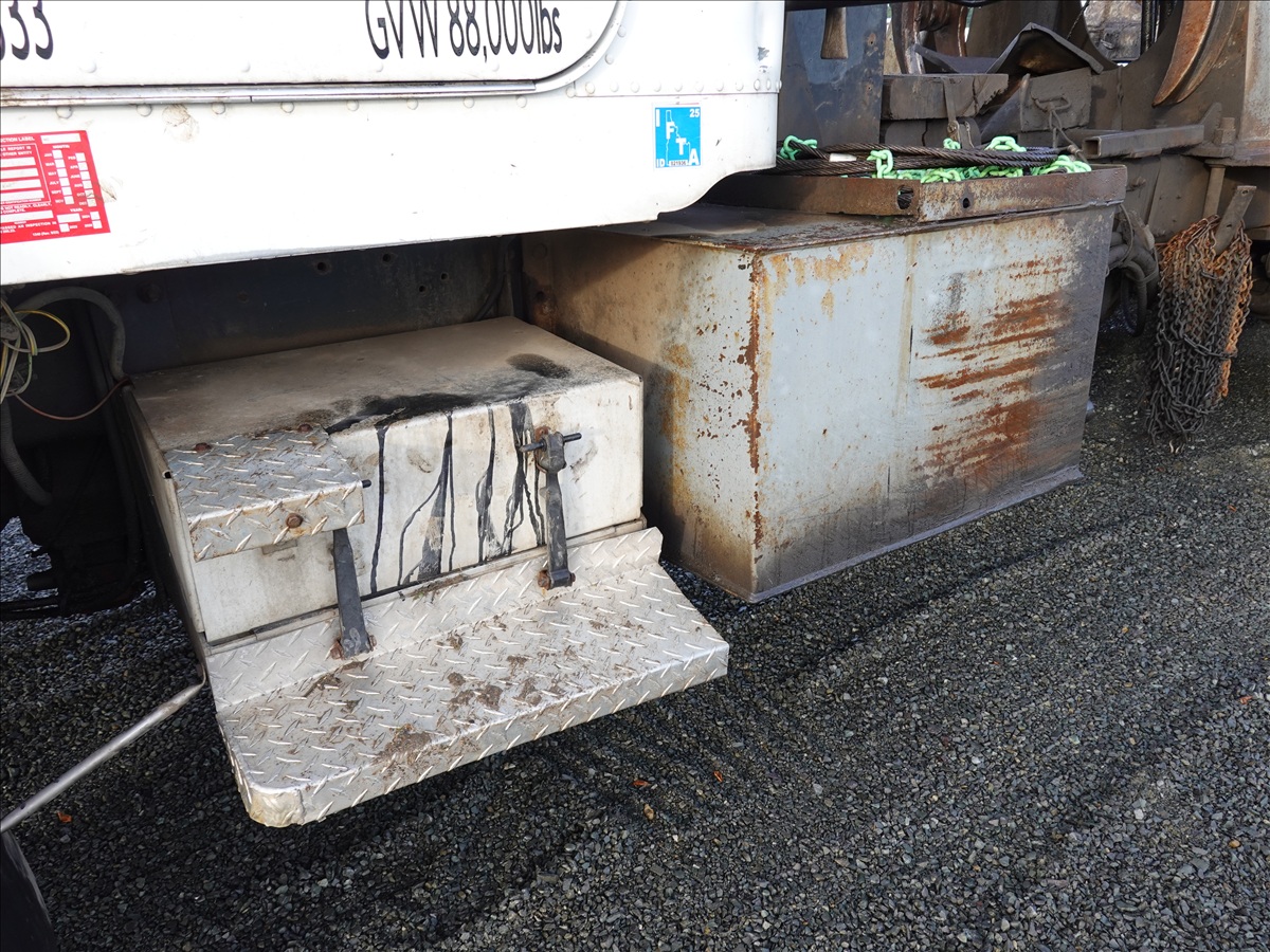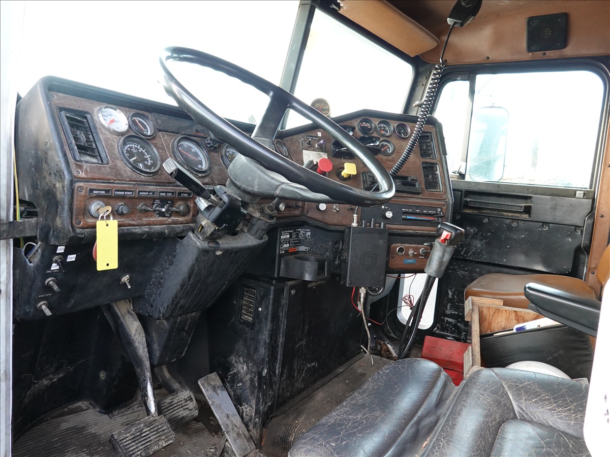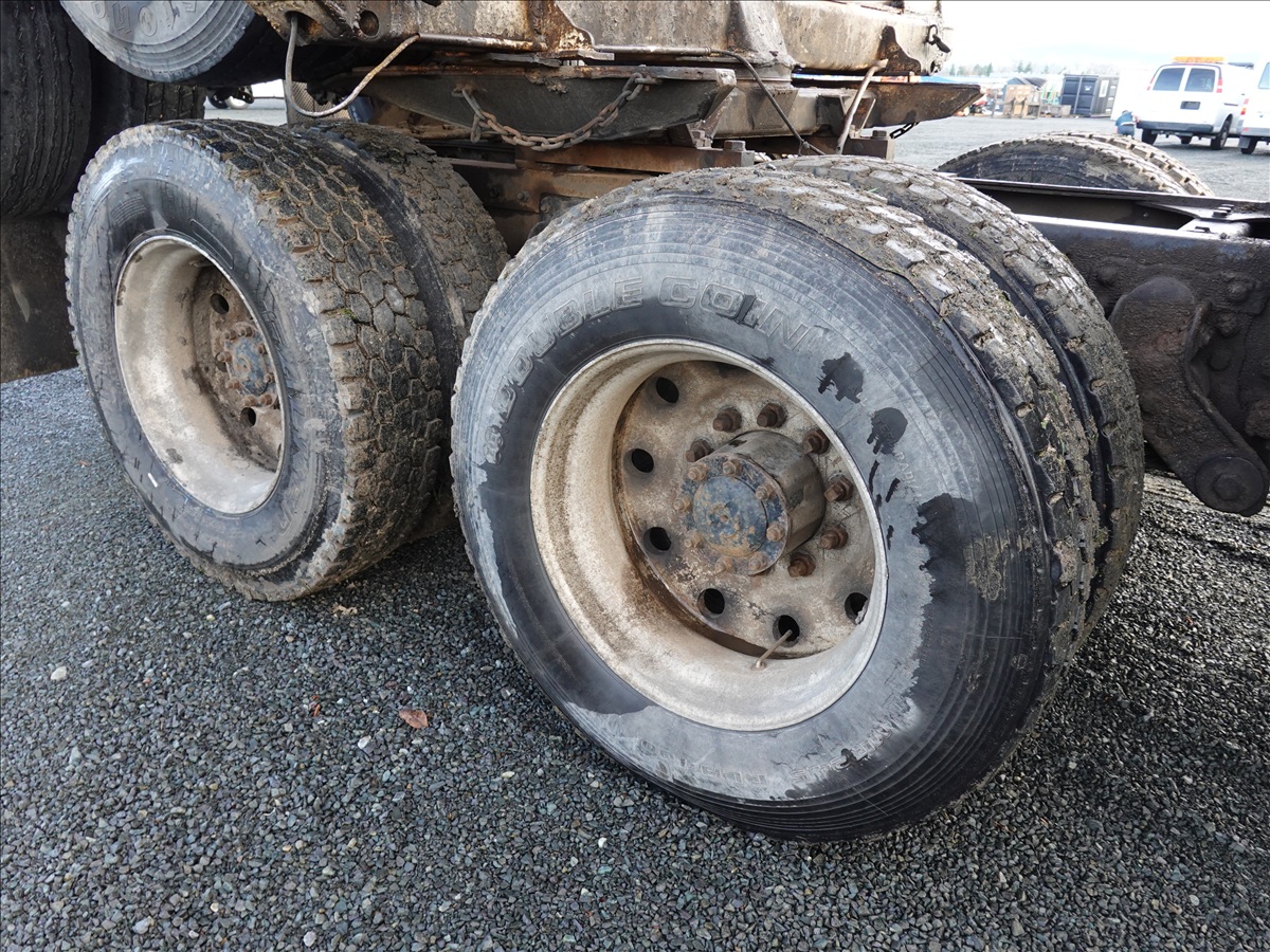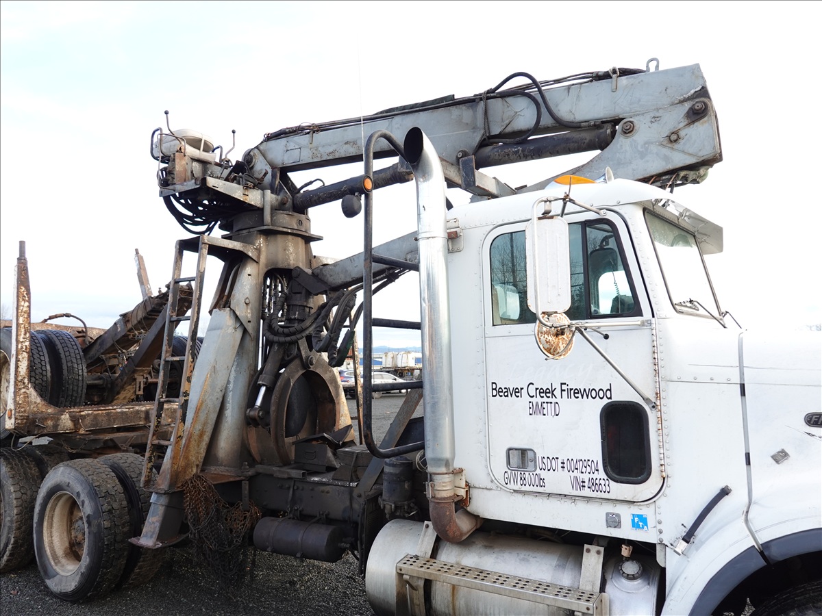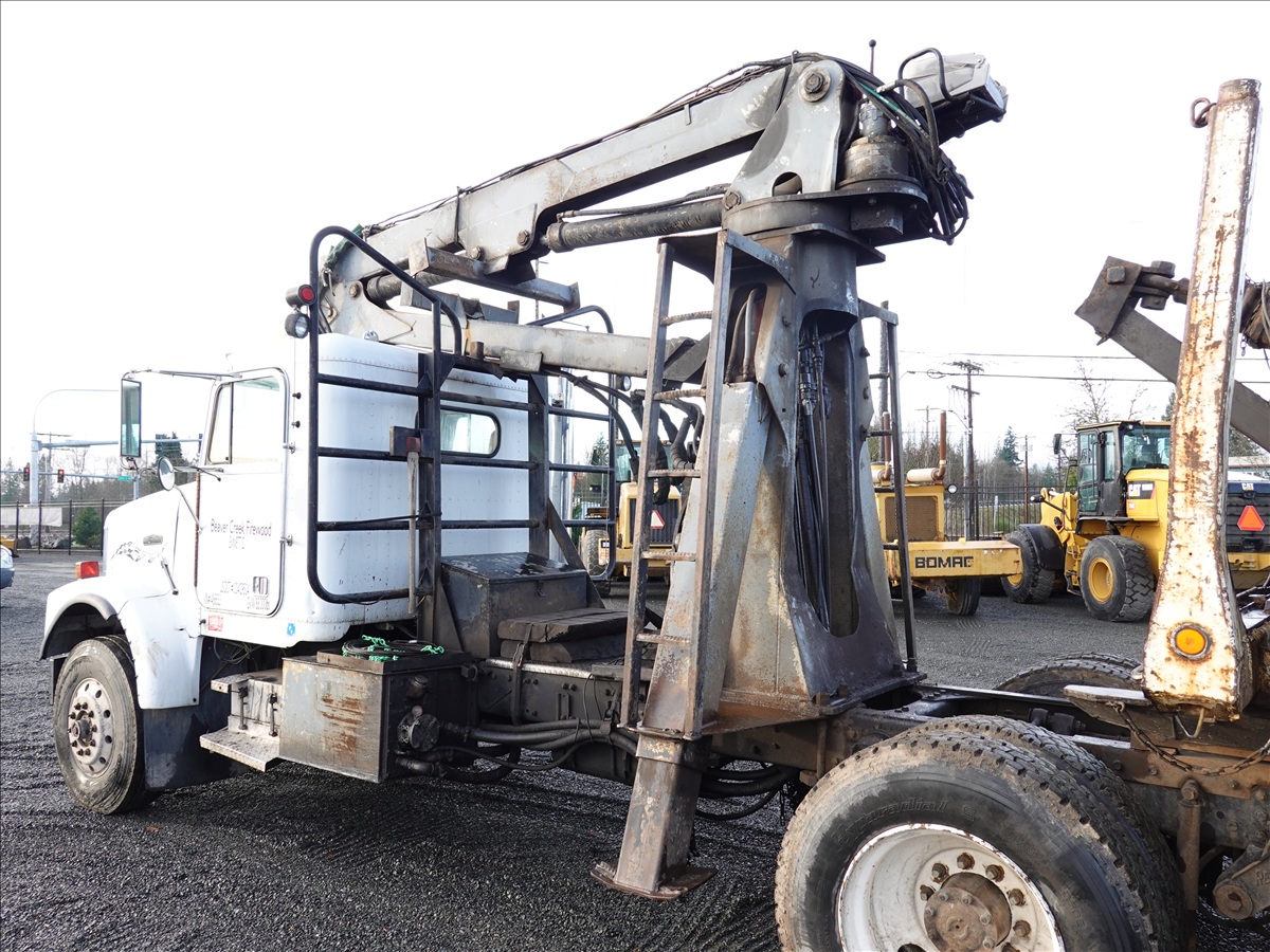 T/A, LOG TRUCK, SELF LOADER W/HYD OUTRIGGERS, 444 HP CUMMINS NTC, 13 SPD, AIR SUSPENSION, 231" W/B, A/B, DOUBLE FRAME, DOUBLE LOCKERS W/ T/A LOG TRAILER, EXPANDABLE TONGUE, 285/75R24.5