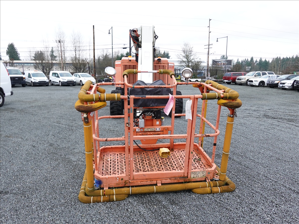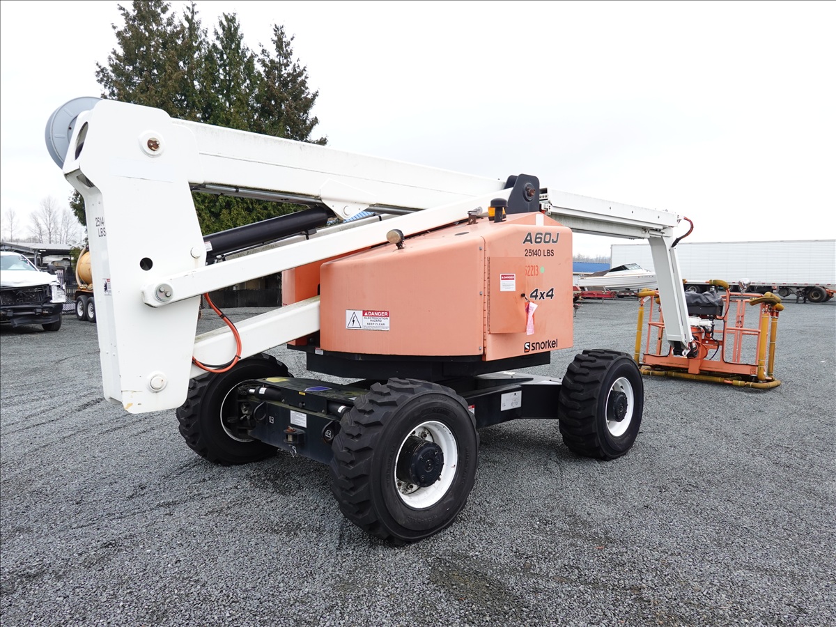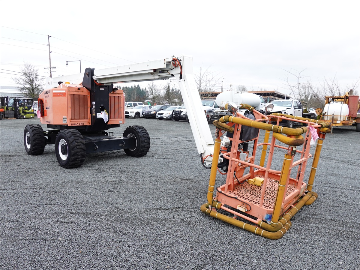 4WD ARTICULATED BOOM LIFT, 60' PLATFORM HEIGHT, 43' PLATFORM HEIGHT, 43' PLATFORM REACH, 500 LB CAPACITY, 4 CYL LPG, A/C RECEPTICAL AT PLATFORM (ENGINE ISSUE)
