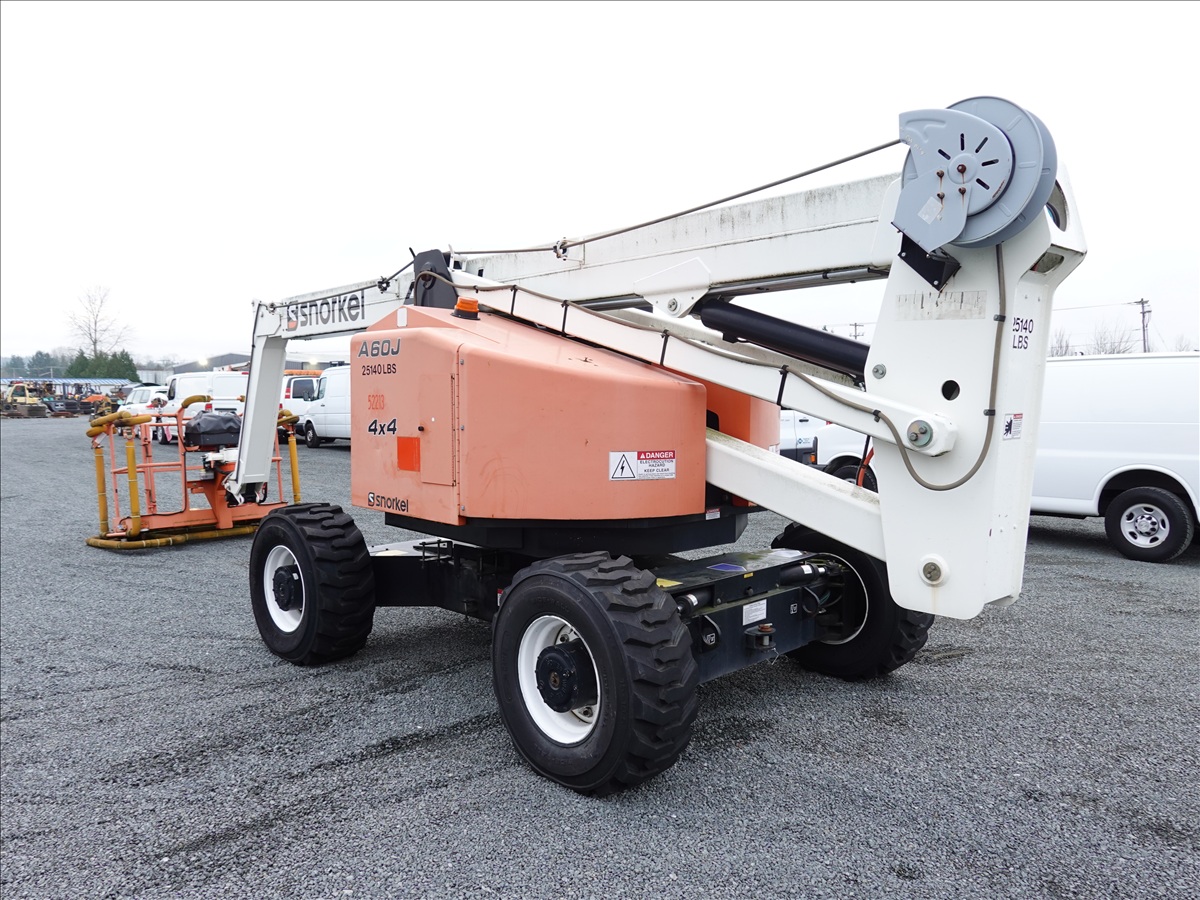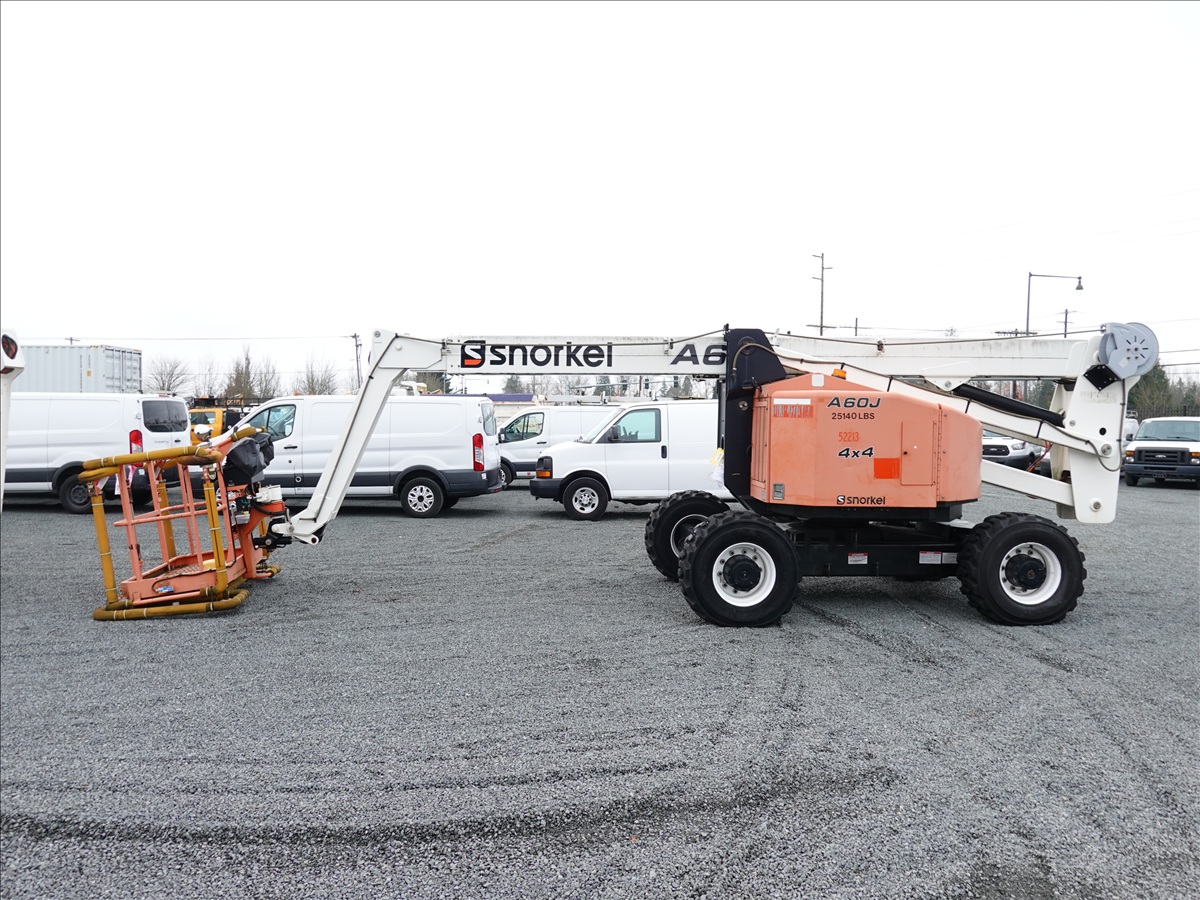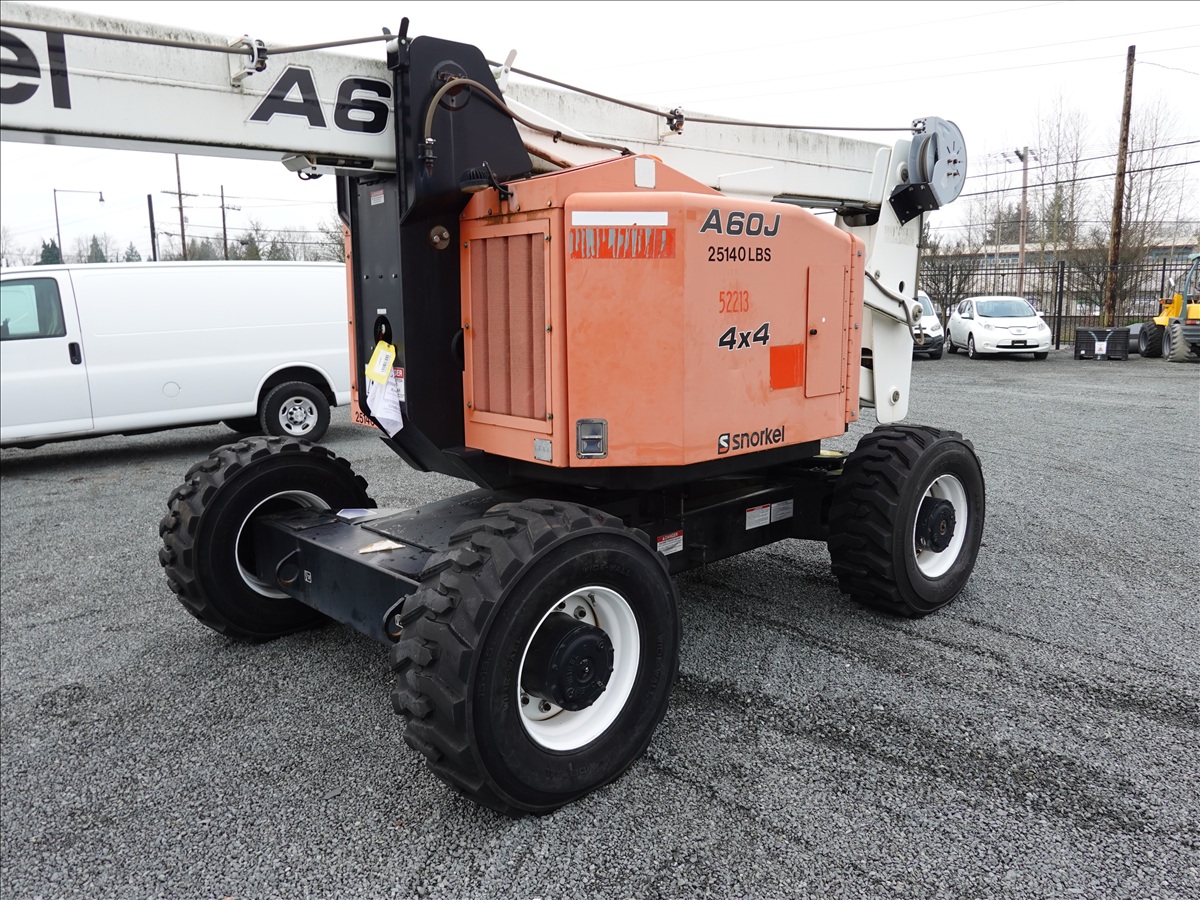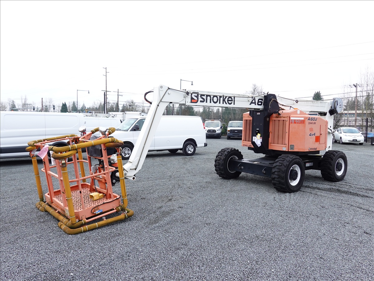 4WD ARTICULATED BOOM LIFT, 60' PLATFORM HEIGHT, 43' PLATFORM HEIGHT, 43' PLATFORM REACH, 500 LB CAPACITY, 4 CYL LPG, A/C RECEPTICAL AT PLATFORM (ENGINE ISSUE)