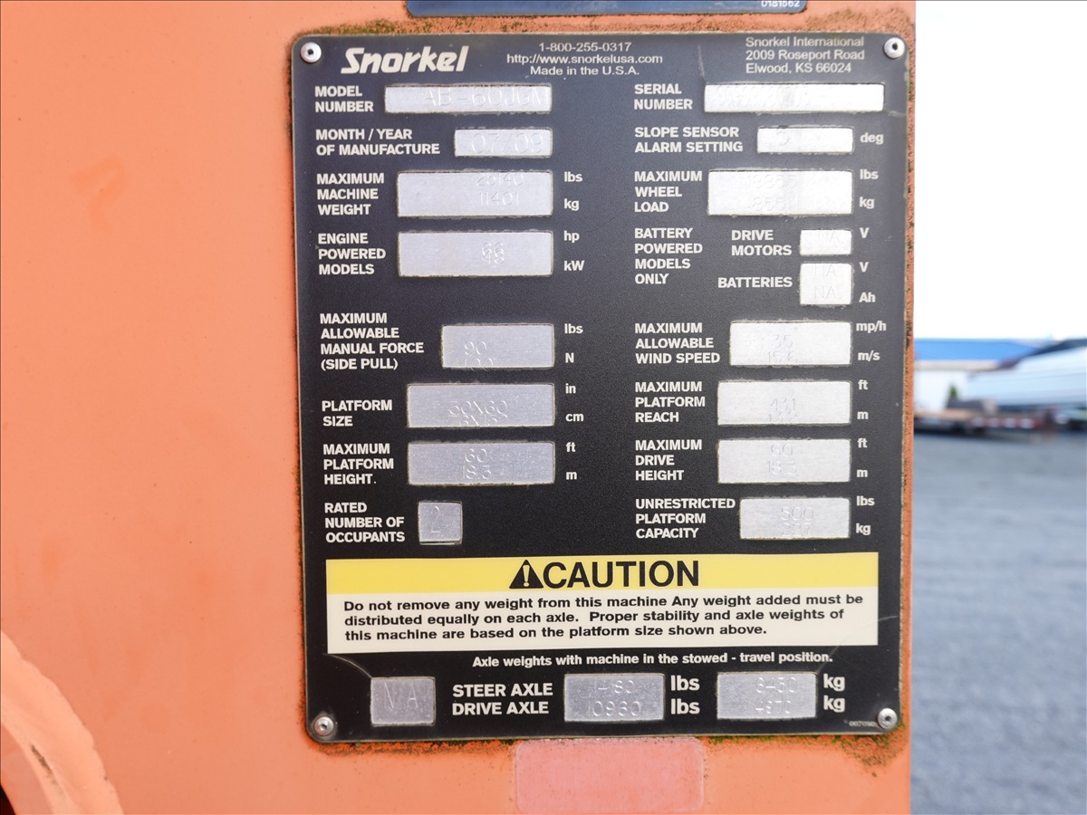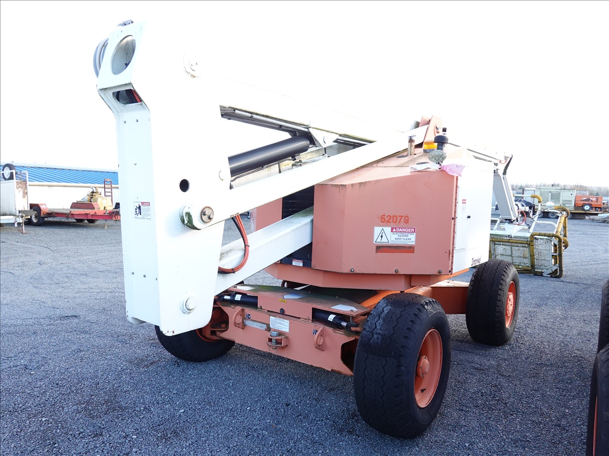2WD ARTICULATED BOOM LIFT, 60' PLATFORM HEIGHT, 43' PLATFORM HEIGHT, 43' PLATFORM REACH, 500 LB CAPACITY, 4 CYL LPG, A/C RECEPTICAL AT PLATFORM (ENGINE TURNS OVER, WILL NOT START)