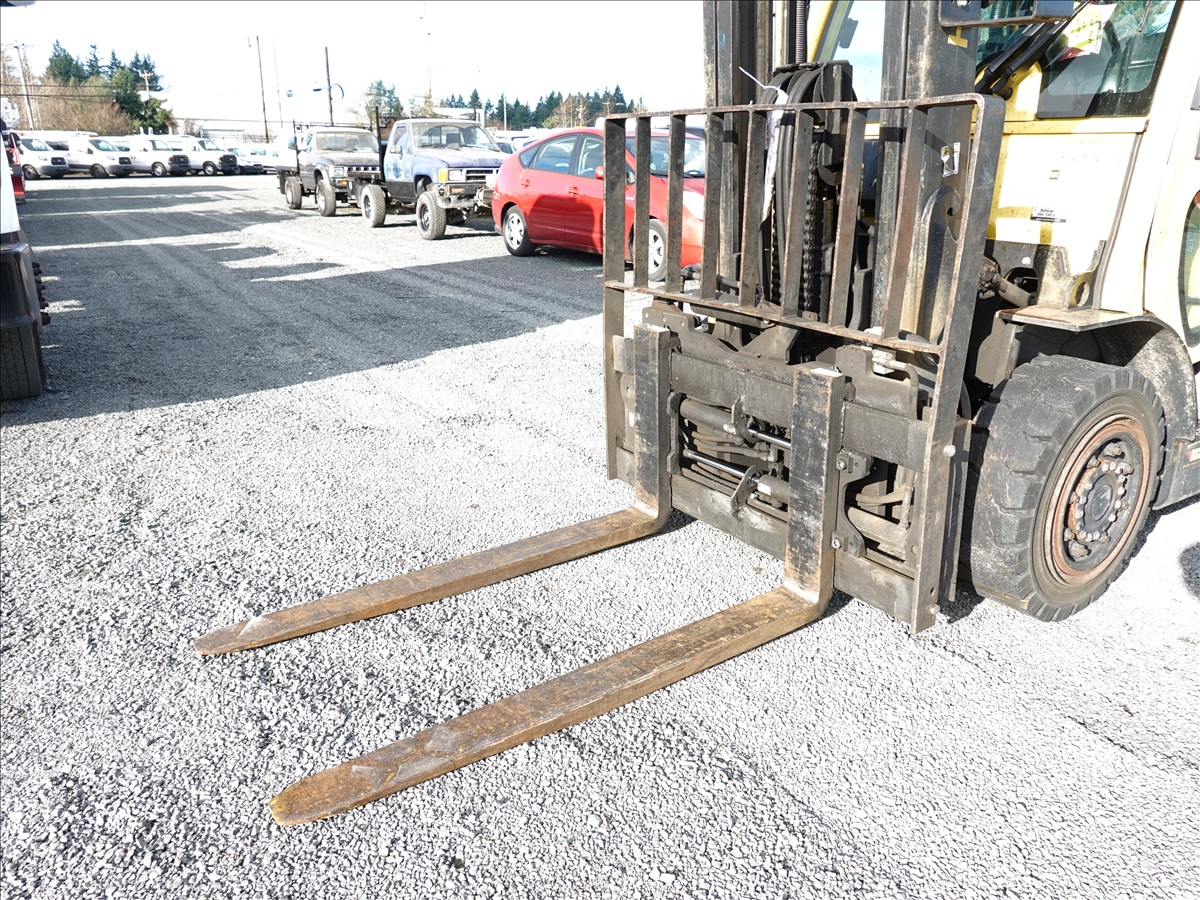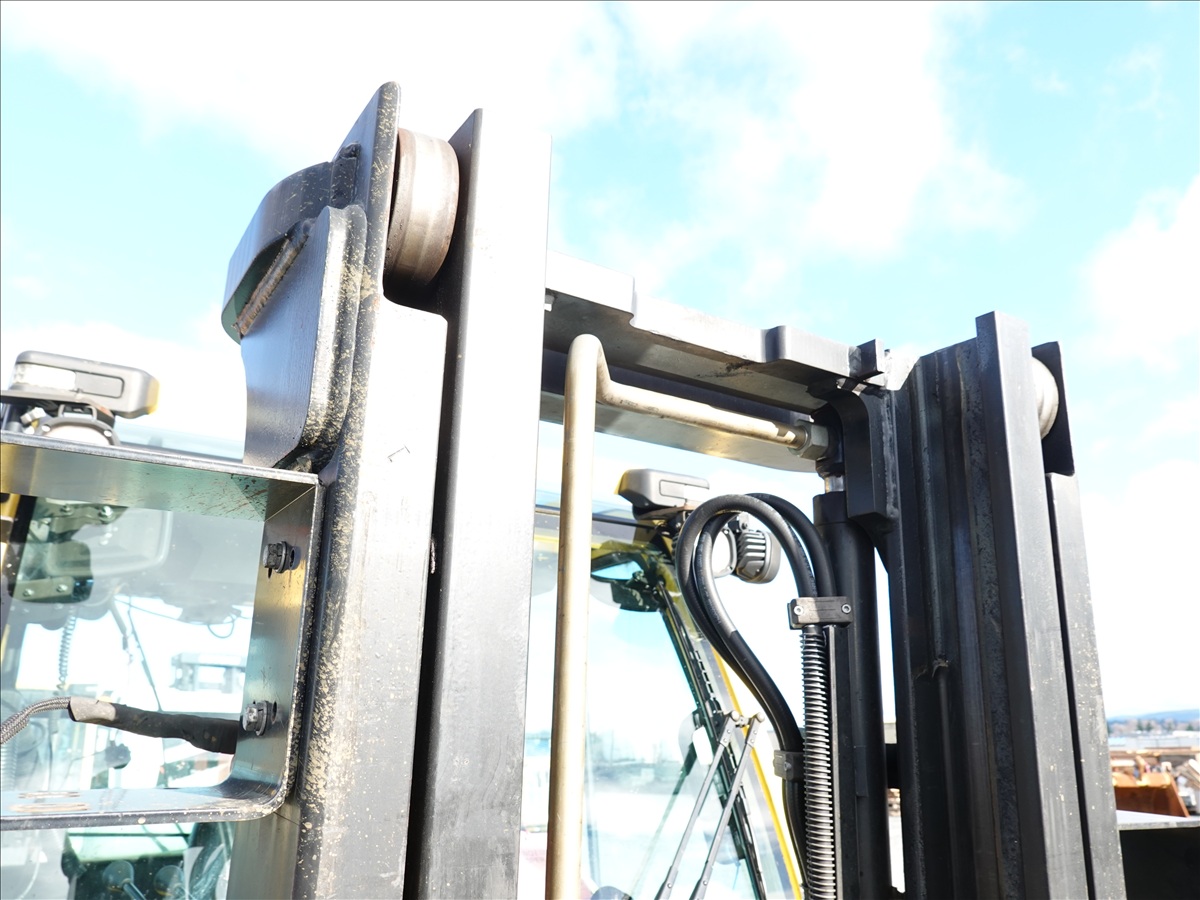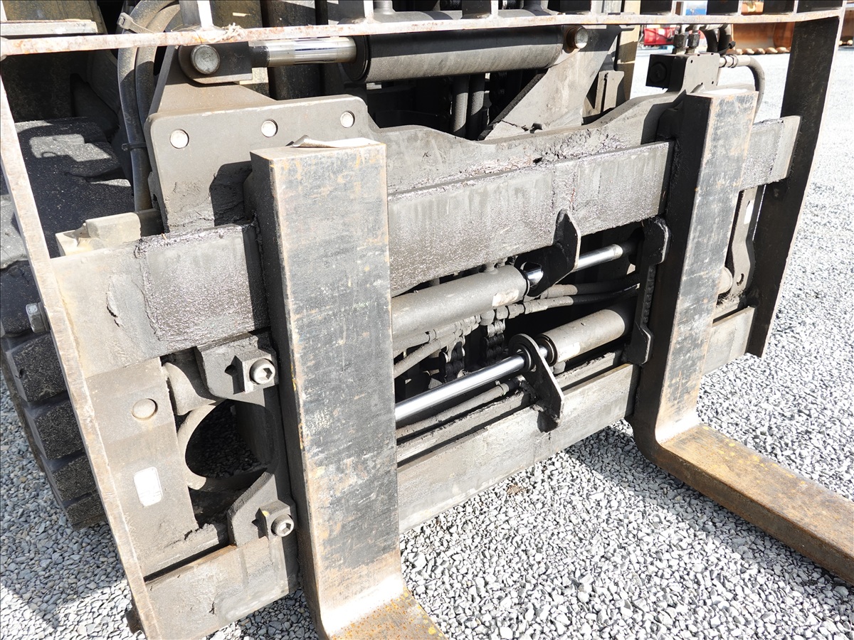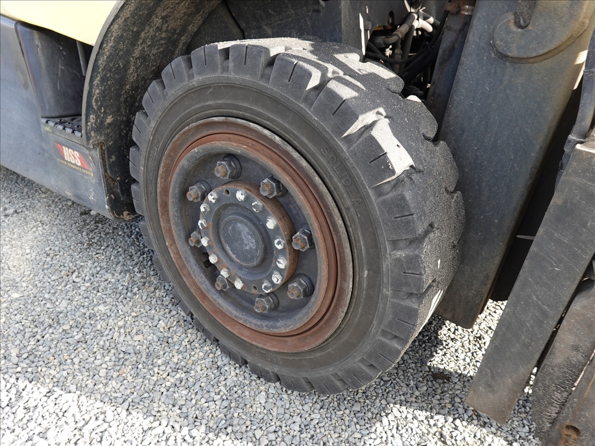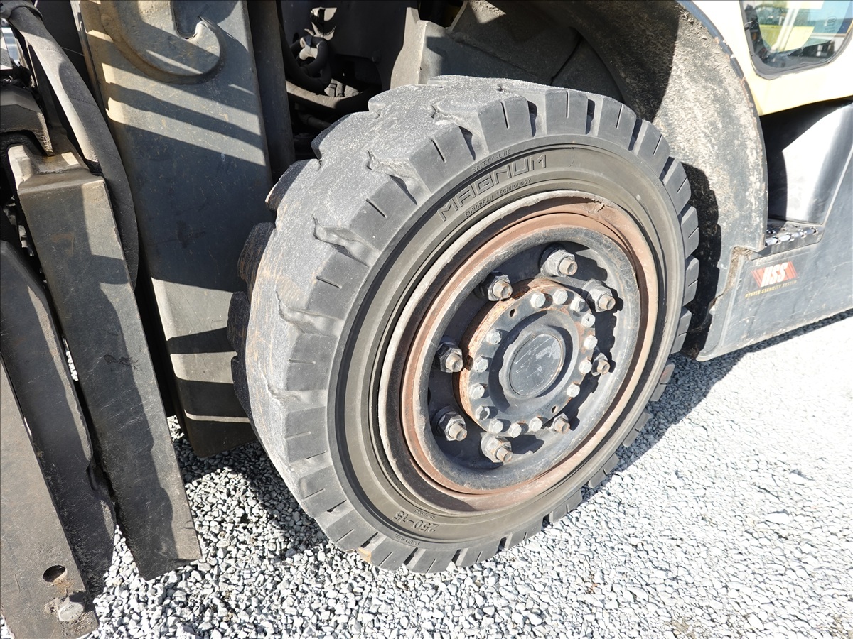 7,550 LB SOLID TIRE FORKLIFT, 121" FORK HEIGHT, 2-STAGE MAST, SIDE SHIFT, FORK POSITIONERS, KUBOTA WG3800-L-LPG, A/C CAB