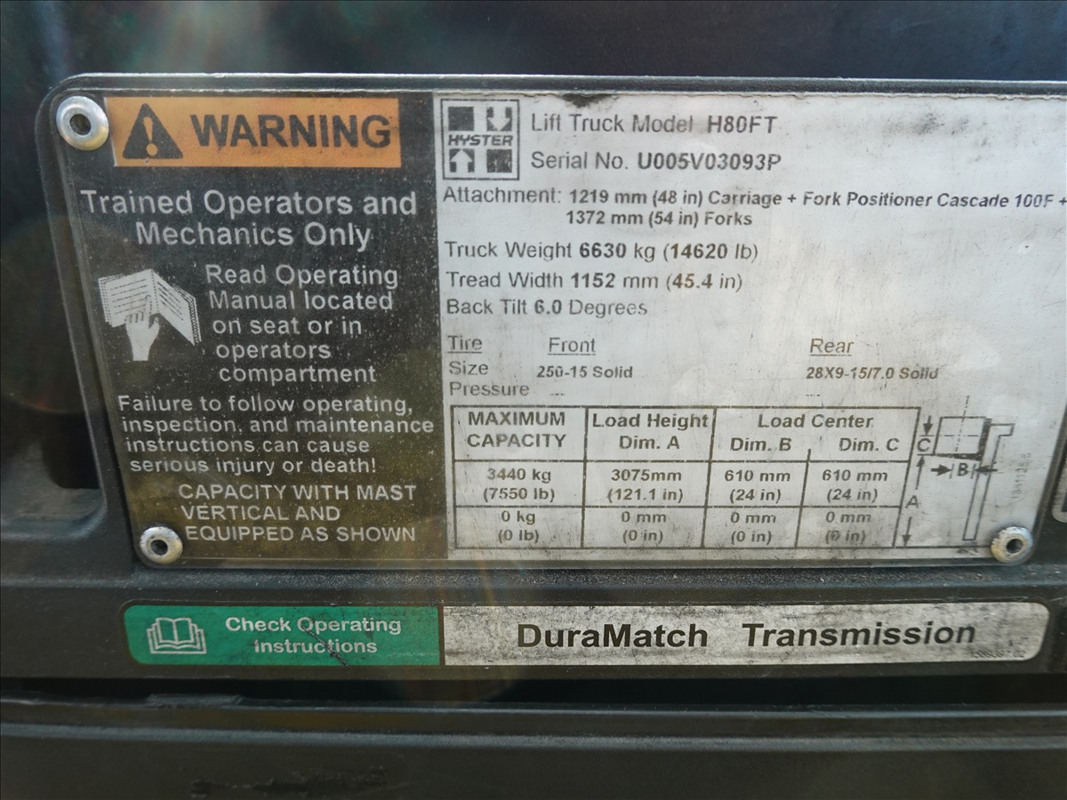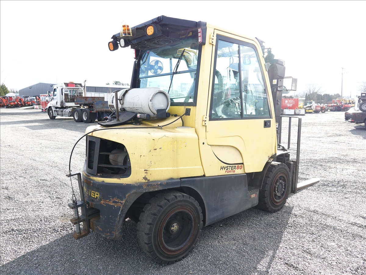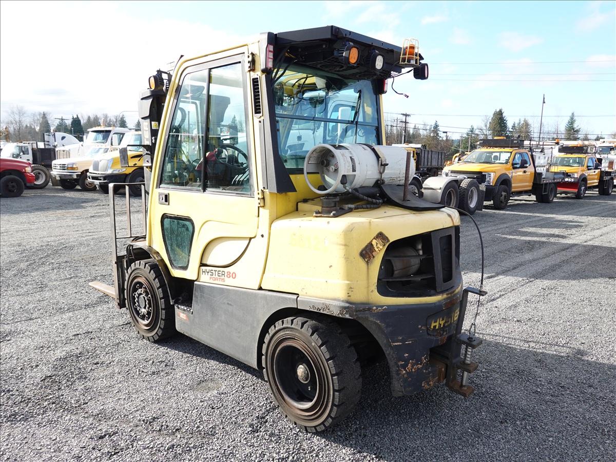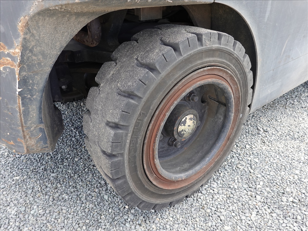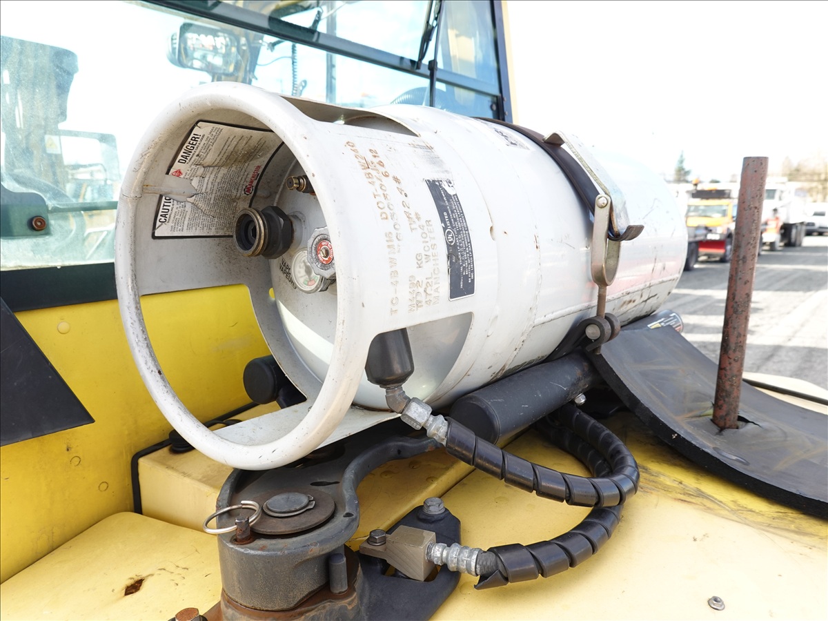 7,550 LB SOLID TIRE FORKLIFT, 121" FORK HEIGHT, 2-STAGE MAST, SIDE SHIFT, FORK POSITIONERS, KUBOTA WG3800-L-LPG, A/C CAB
