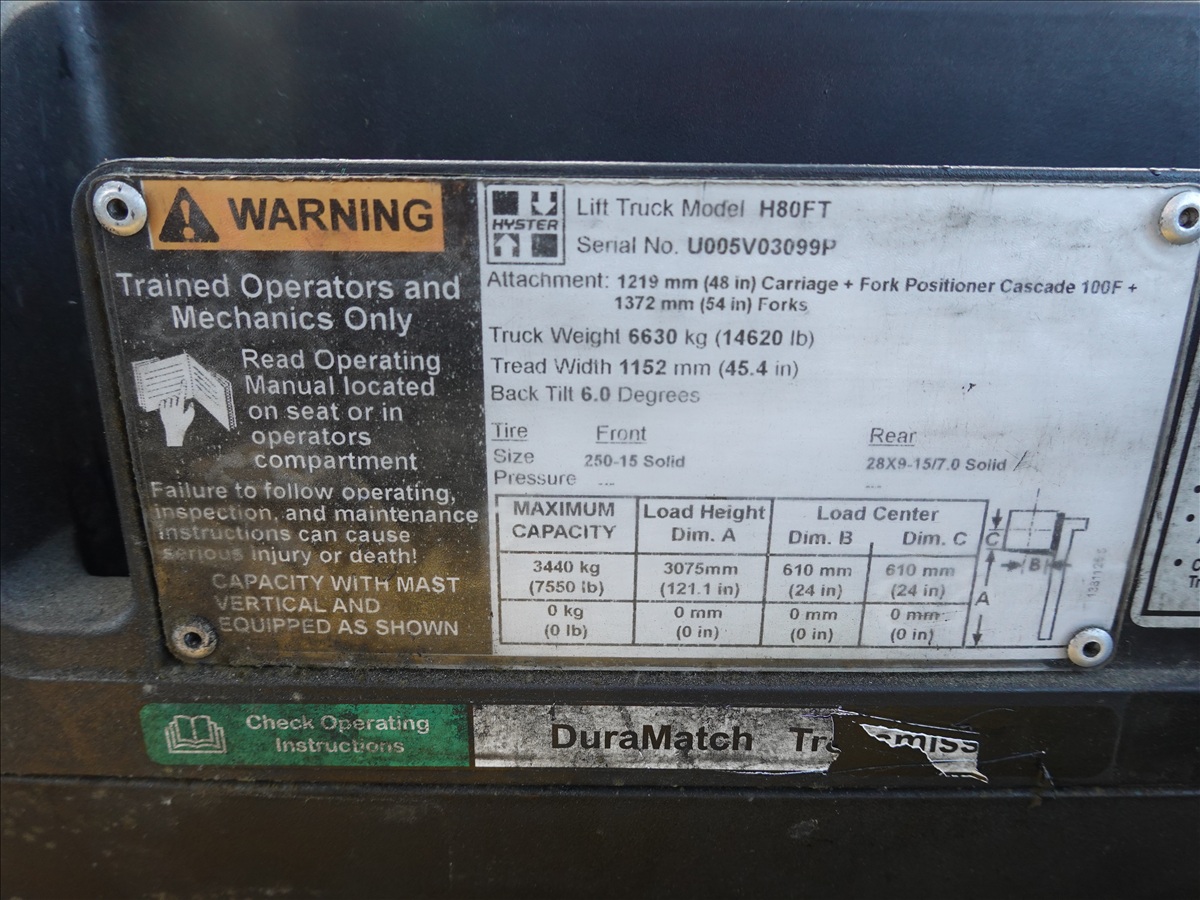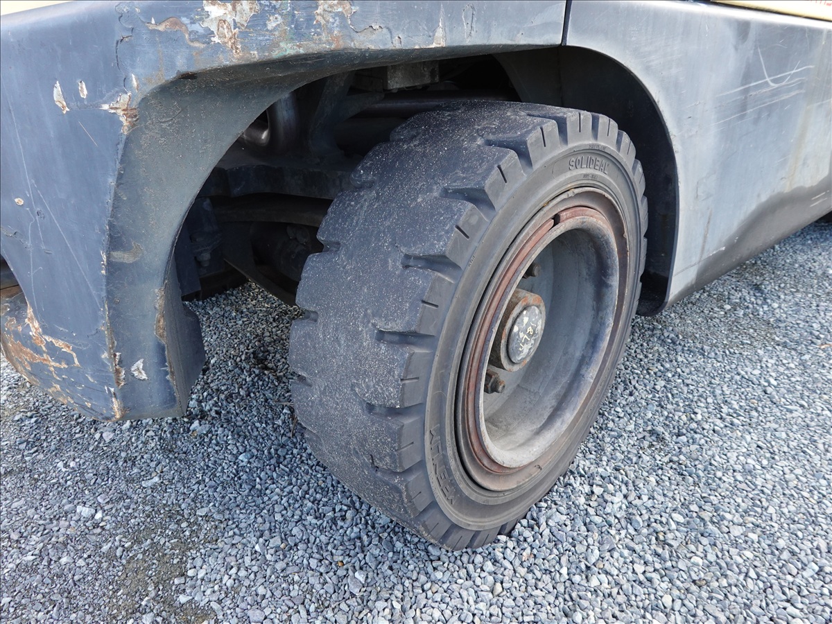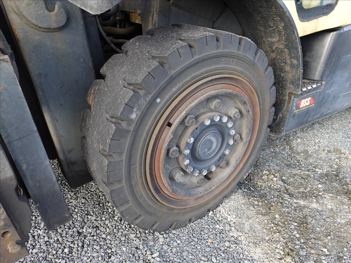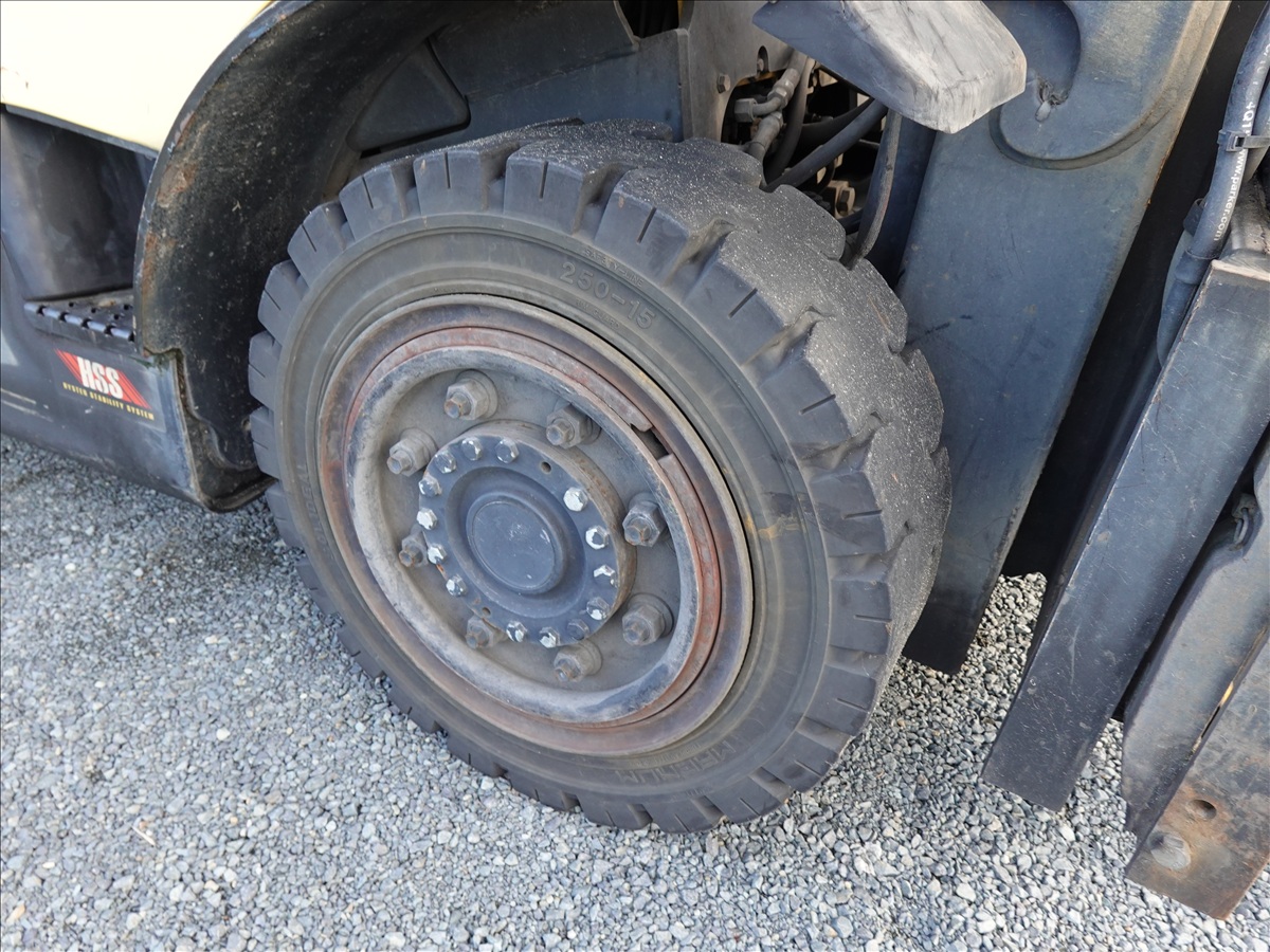 7,550 LB SOLID TIRE FORKLIFT, 121" FORK HEIGHT, 2-STAGE MAST, SIDE SHIFT, FORK POSITIONERS, KUBOTA WG3800-L LPG, A/C CAB (**DISPLAY READS (STARTER INTERLOCK) ENGINE WILL NOT CRANK OVER, UNABLE TO READ HOUR METER READER**)