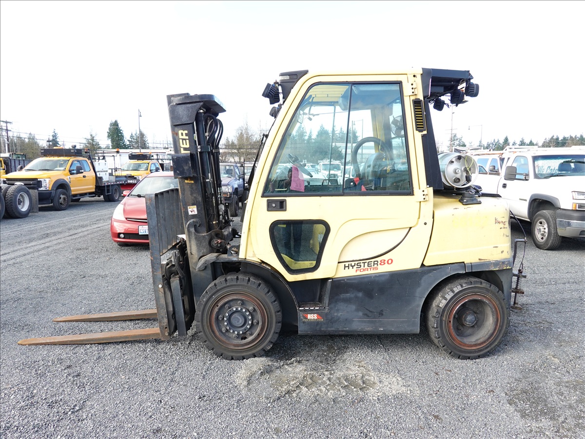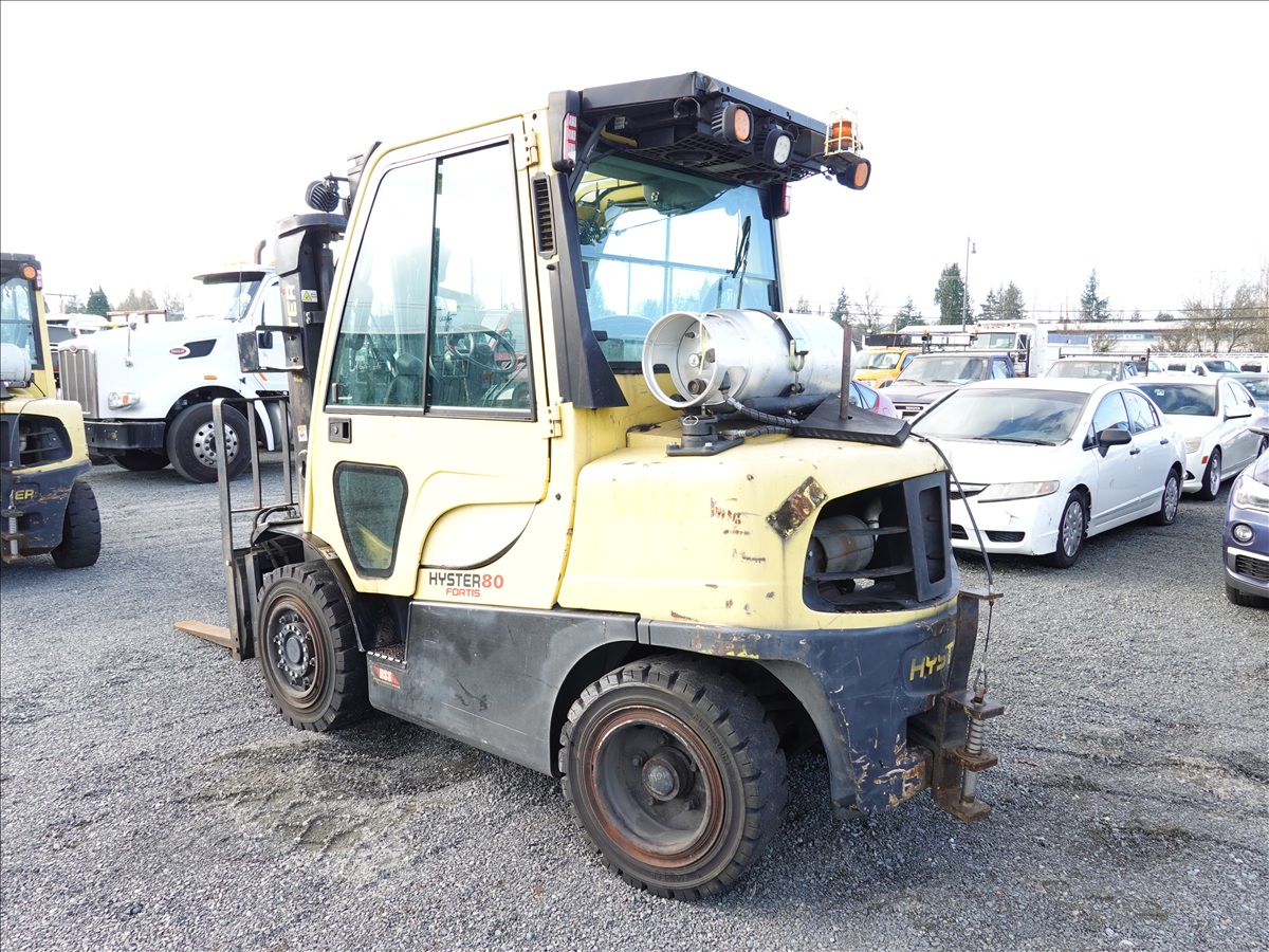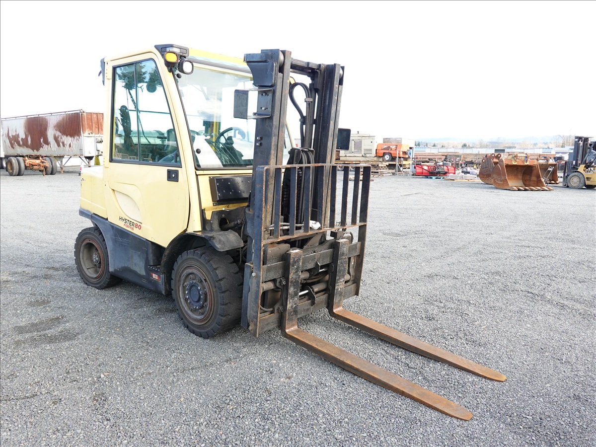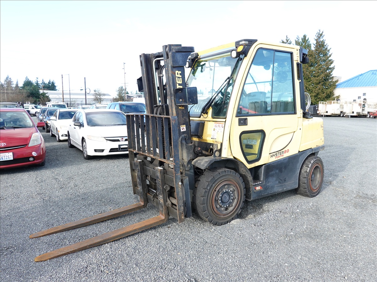 7,550 LB SOLID TIRE FORKLIFT, 121" FORK HEIGHT, 2-STAGE MAST, SIDE SHIFT, FORK POSITIONERS, KUBOTA WG3800-L LPG, A/C CAB (**DISPLAY READS (STARTER INTERLOCK) ENGINE WILL NOT CRANK OVER, UNABLE TO READ HOUR METER READER**)