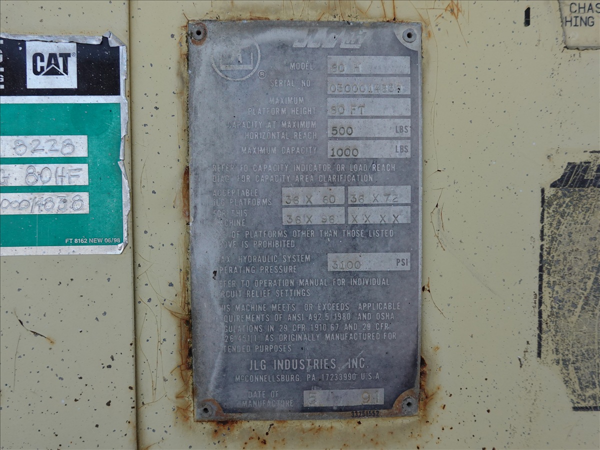 1991 JLG 80H TELESCOPIC BOOM LIFT