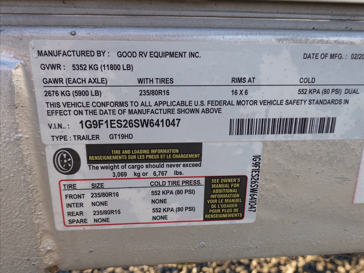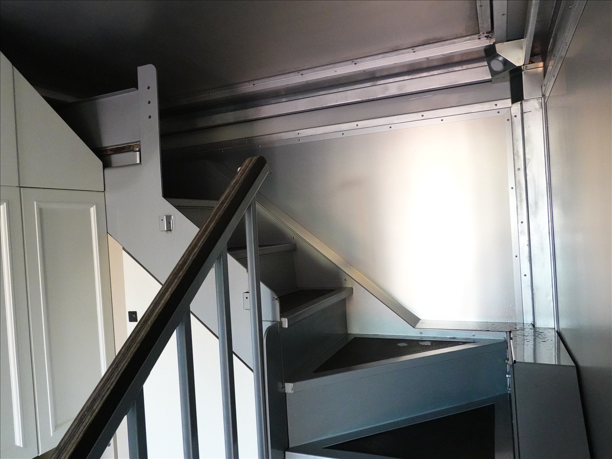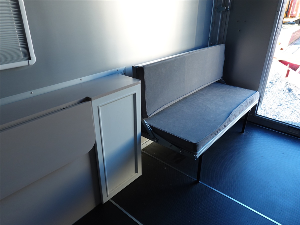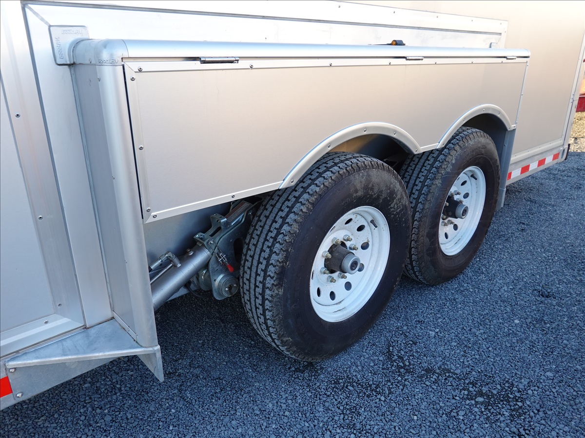T/A, 19' X 7'2" 11,800 LB GVWR HYDRAULIC DROP DECK ENCLOSED TRAILER, SINK, STAIRS TO ROOF HATCH, FOLDING SEATS, SIDE WINDOWS, END DOOR, SELF CONTAINED HYDRAULIC POWER BOX, 235/80R16