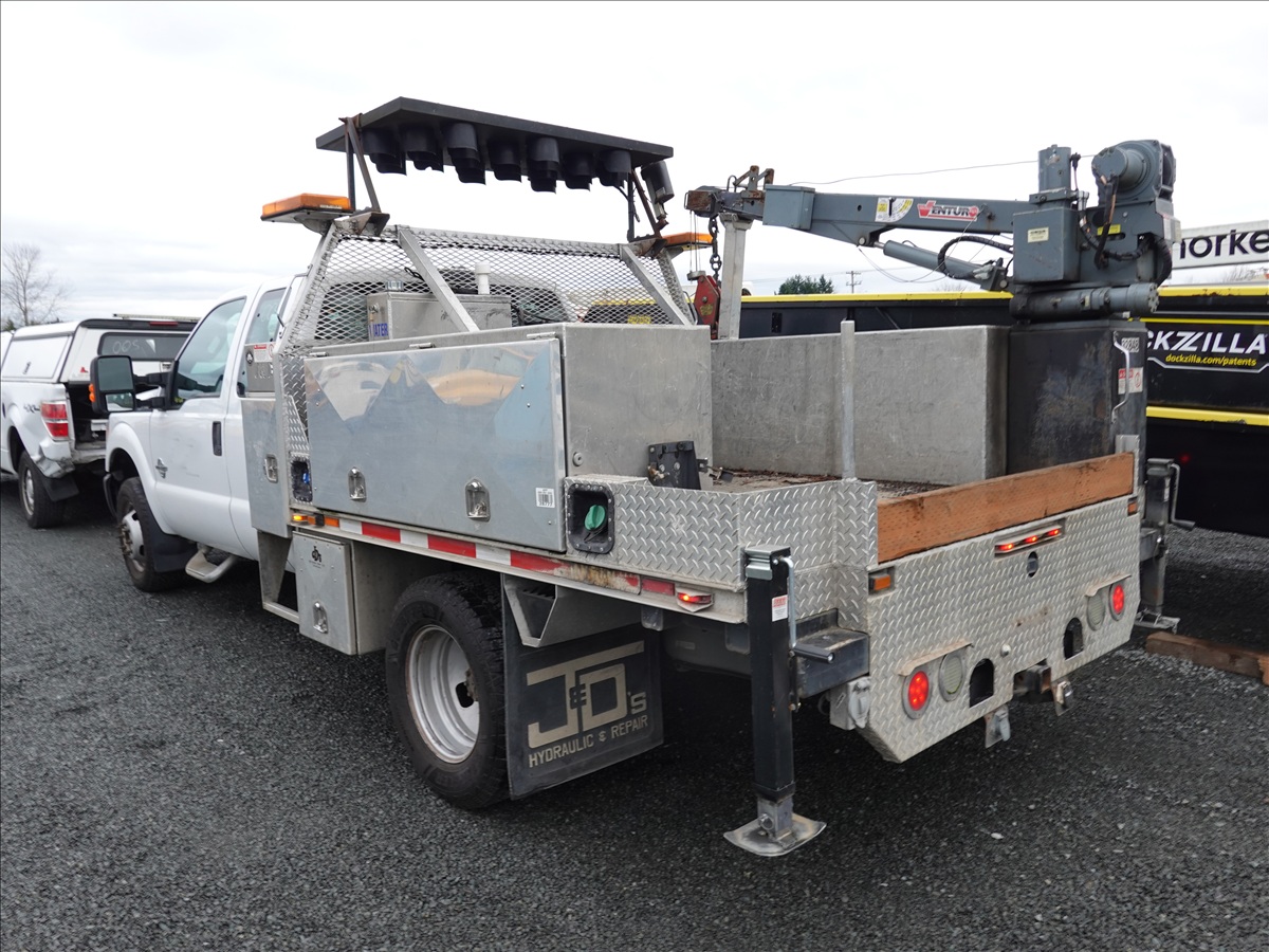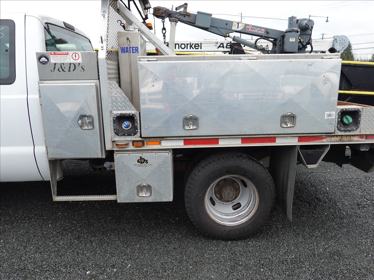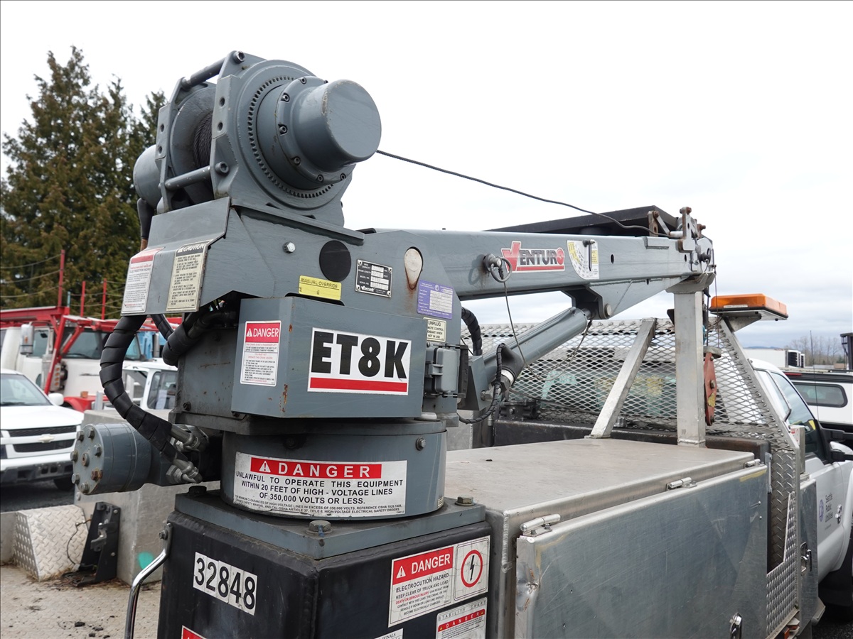 EXT CAB 8' FLATBED, POWER STROKE V8, AUTO, DRW, VENTURO ET8K 3,200 LB CRAIN, ARROW BOARD (**CITY DISCLOSURE: OIL LEAK, ENGINE KNOCK, DOES NOT START**)