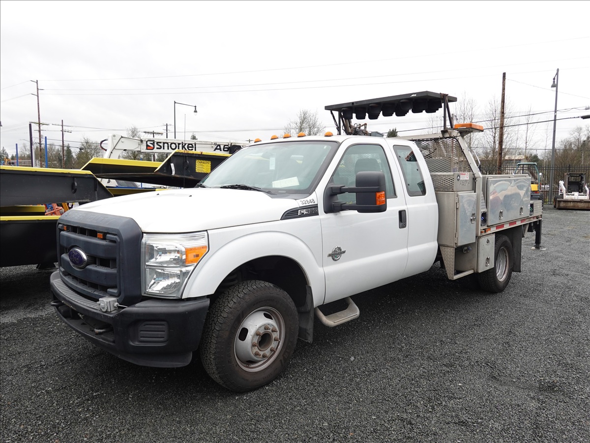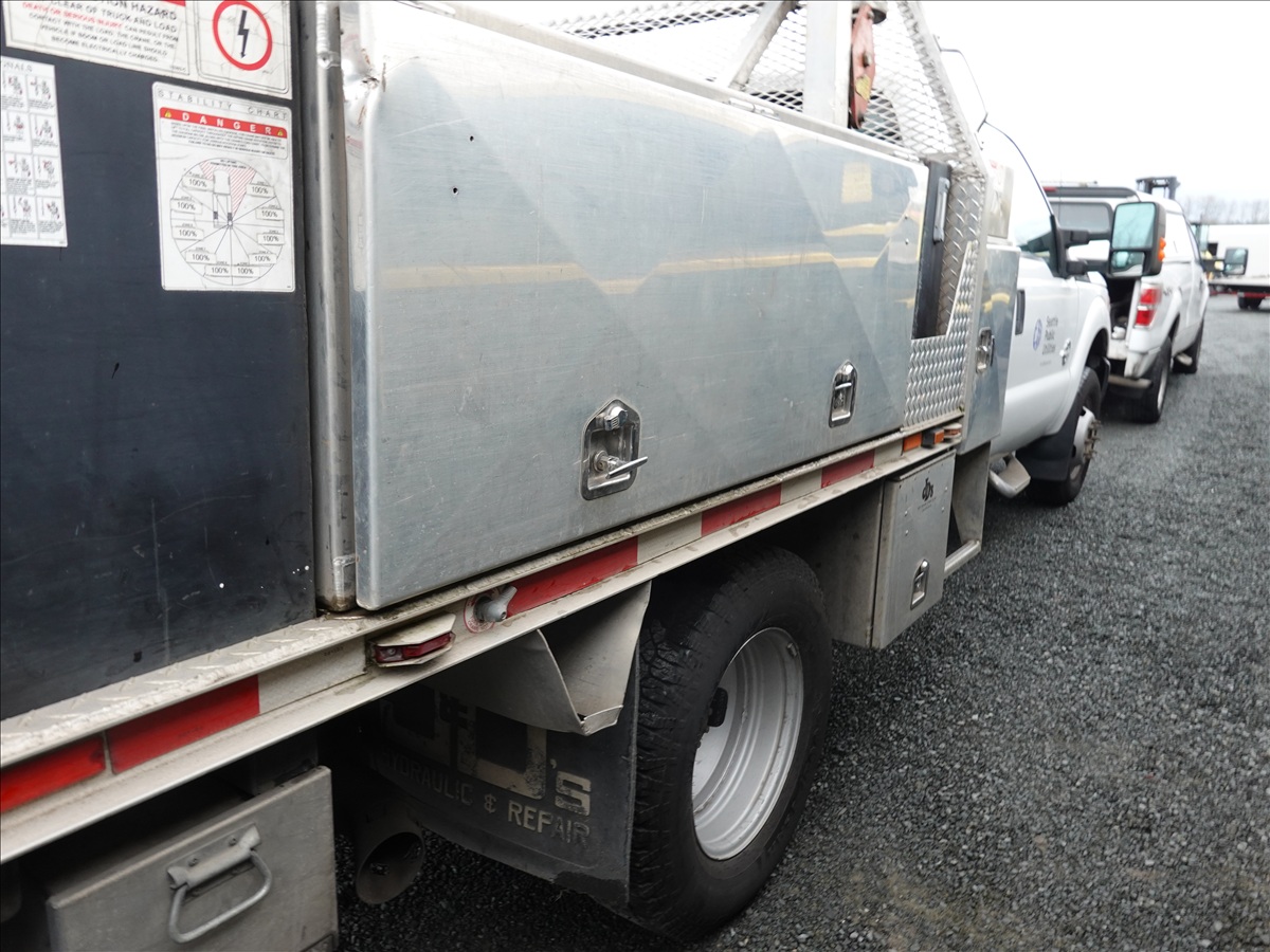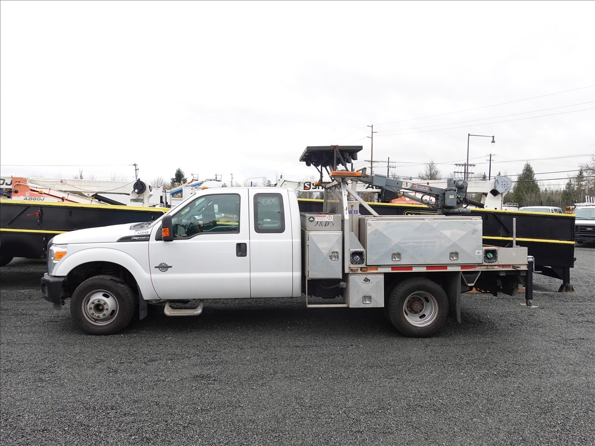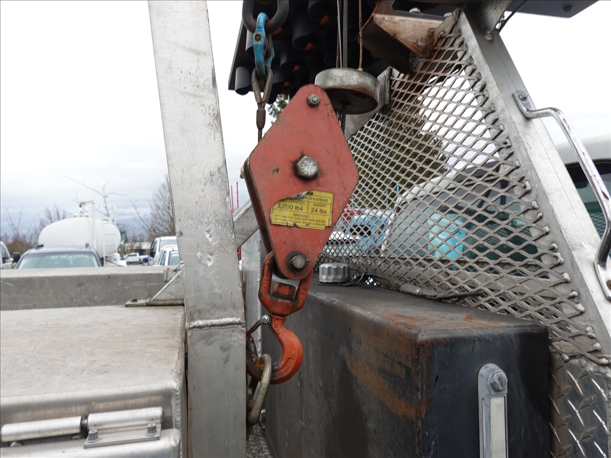 EXT CAB 8' FLATBED, POWER STROKE V8, AUTO, DRW, VENTURO ET8K 3,200 LB CRAIN, ARROW BOARD (**CITY DISCLOSURE: OIL LEAK, ENGINE KNOCK, DOES NOT START**)