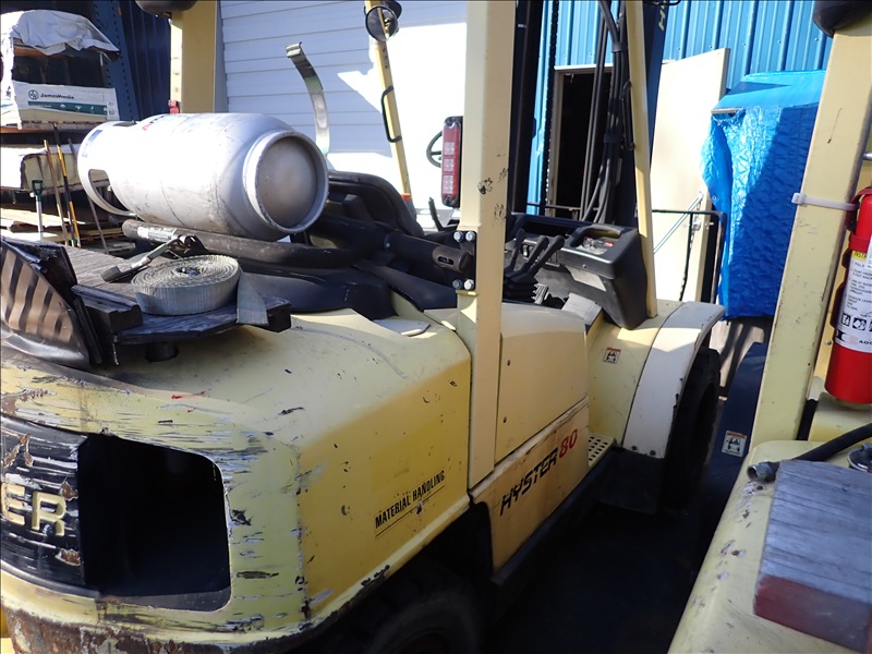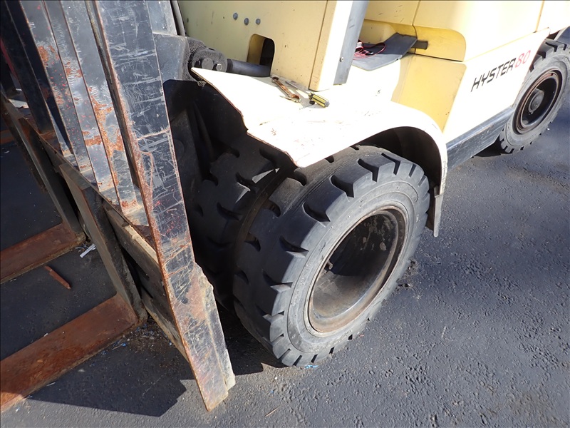 8,300LB CAP. DUAL CUSHION TIRED FORKLIFT, 169" 2-STAGE MAST, SIDE SHIFT, LUMBER FORKS, PROPANE, S/N: L005V04342C (NEEDS NEW STARTER)