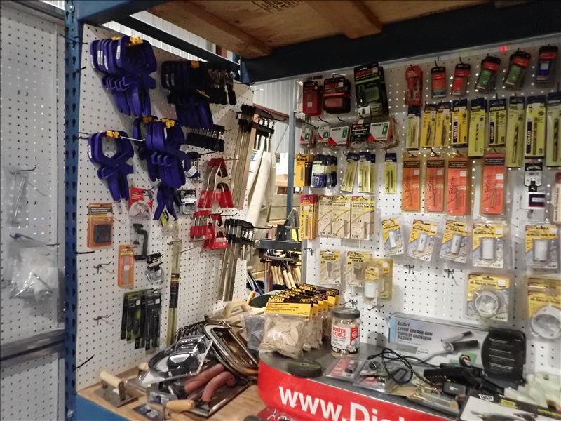 GROUP OF HOLE SAWS, CLAMPS, APPLICATORS, SHEETING & PAINT SUPPLY INVENTORY