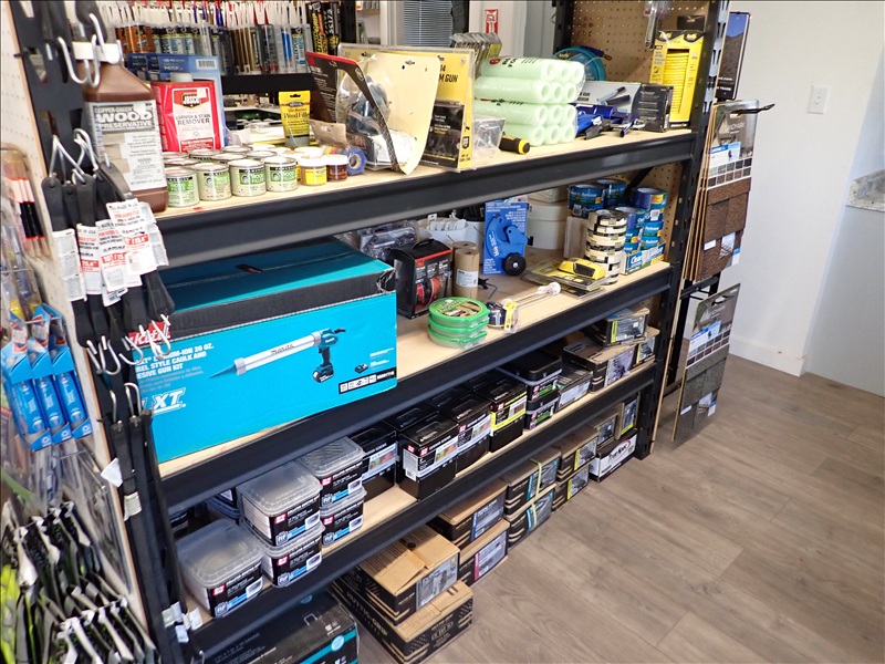 GROUP OF STAINS, NAILS, STAPLES & ROOFING SUPPLY INVENTORY