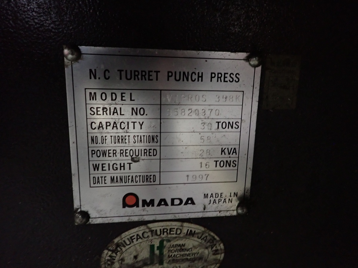 30 TON CNC TURRET PUNCH PRESS, (58) TURRET STATIONS, 2022 ORION RKE5500B-V DC INVERTER CHILLER, YUKEN 47900EX 2000L HYDRAULIC UNIT, AMADAN-04P-C CONTROLS, S/N: 35820370