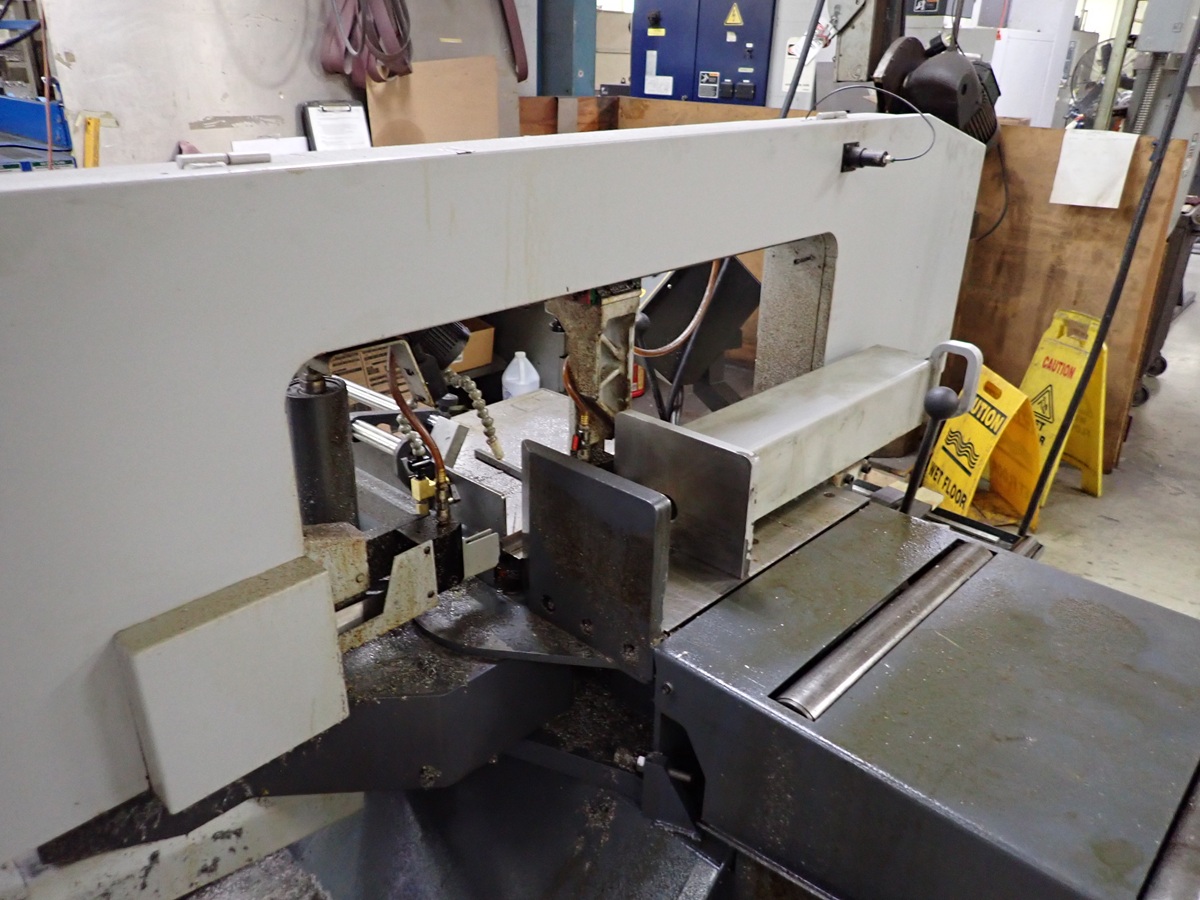HORIZONTAL MITERING BANDSAW, FEED ROLLS, CLAMP, CONTROLS, COOLANT SYSTEM, S/N: 6810152073