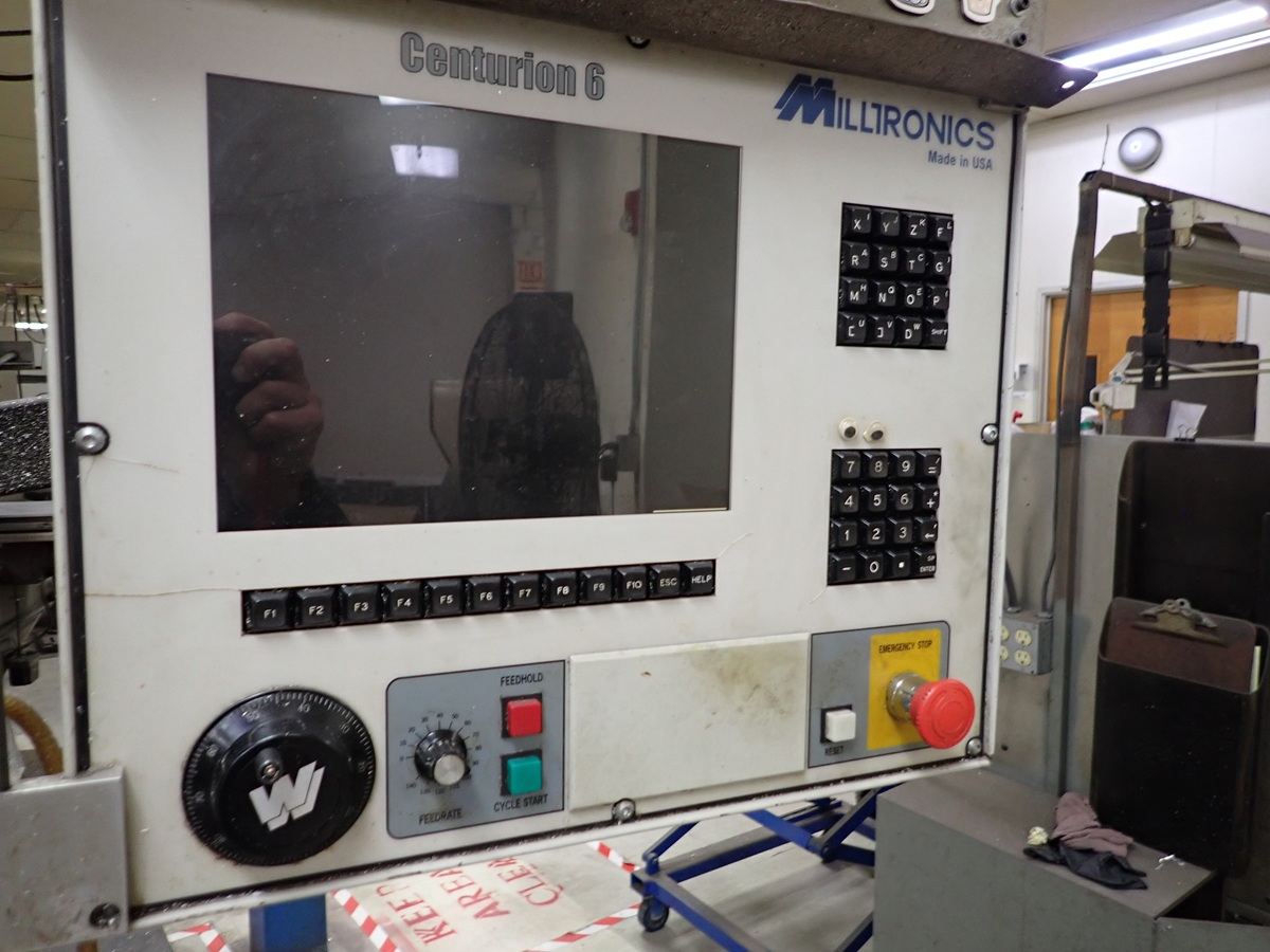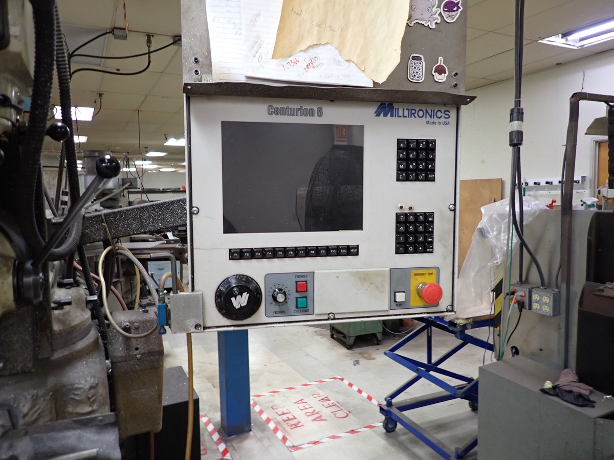 3 HP CNC VERTICAL MILLING MACHINE, 10"X50" TABLE, MILLTRONICS CENTURION 6 CONTROLS